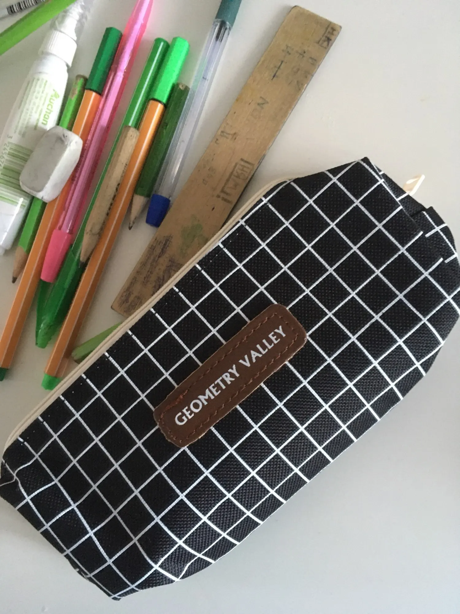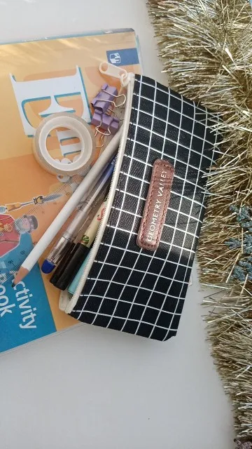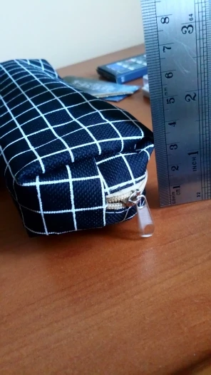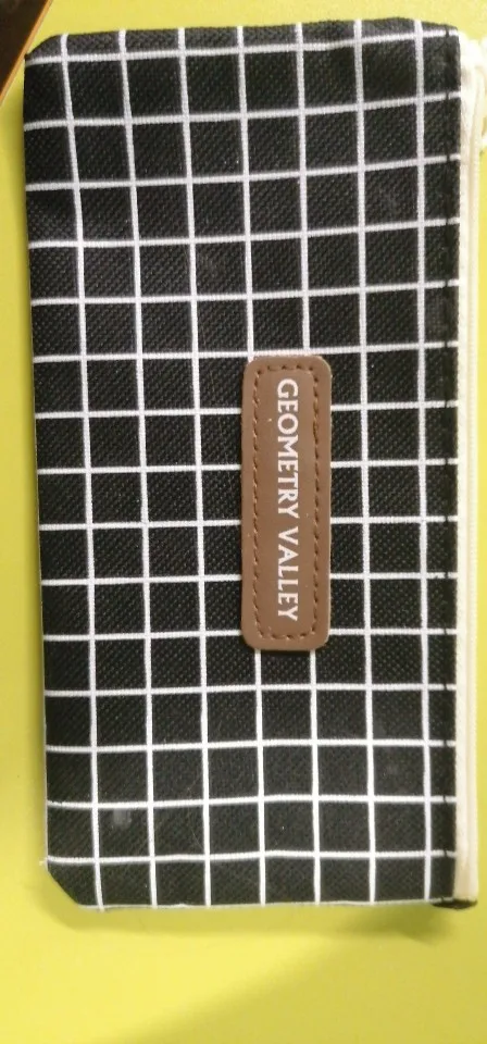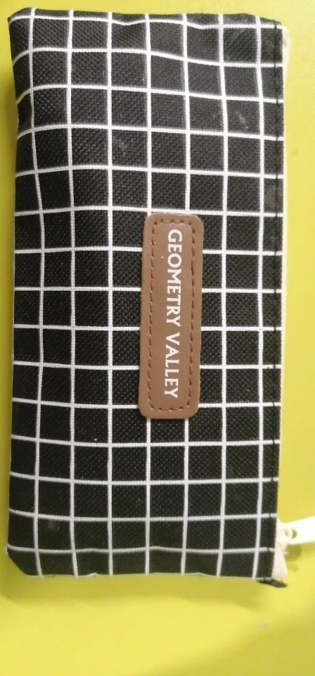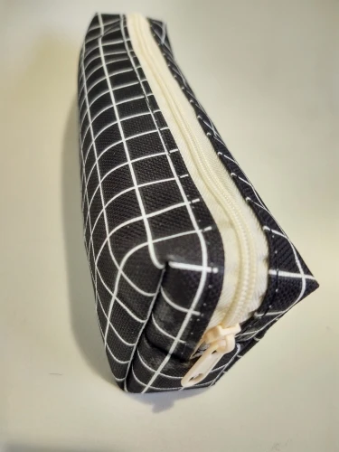 Думаю, что низ плоский, так что пенал может стоять сам по себе, но это не так. Кроме того, сильный химический запах. Не уверены, может ли он даже выйти с стирки