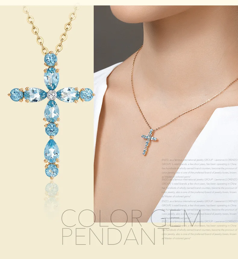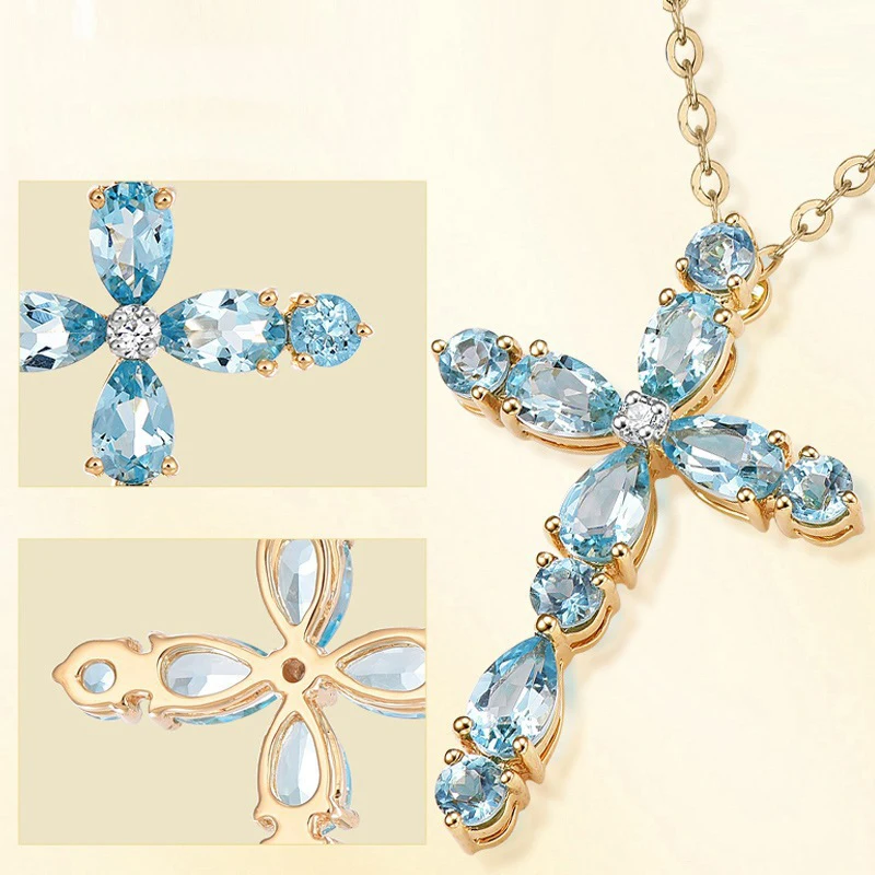 Женское ожерелье с подвеской-крестом из натурального голубого топаза, 18 К золота, модный элегантный кулон с натуральными драгоценными камнями, ювелирные украшения S925