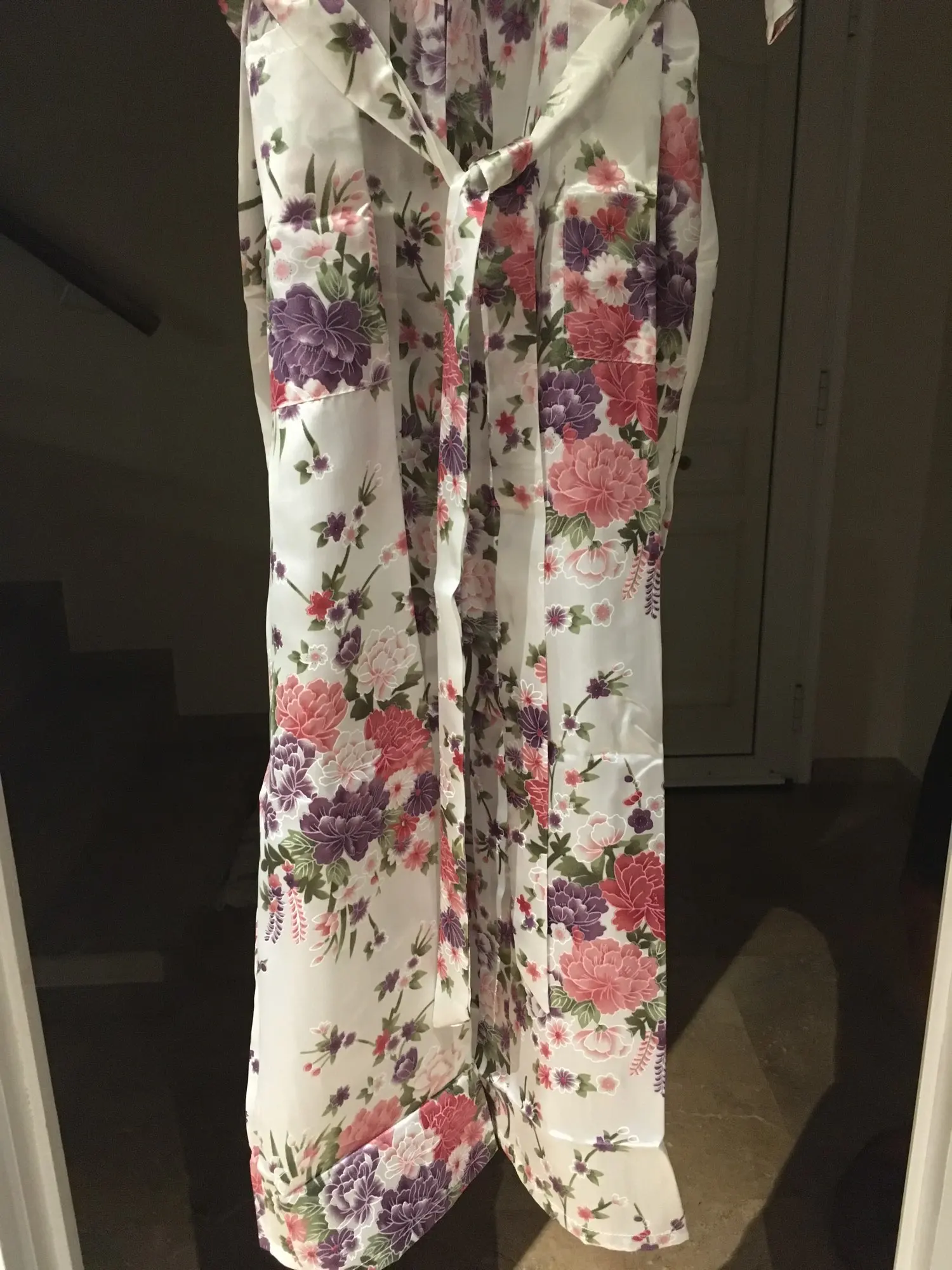 Мне нравится этот халат! Я очень доволен, потому что он красивый и очень хорошего качества. Принт очень ярких цветов. Я спрашивал продавца, какой размер ему нужен, и он спрашивал меня о моих измерениях, росте и весе, и он сказал мне необходимый размер, общий хит. Я настоятельно рекомендую его. Пять звезд. Я снова куплю этого продавца.