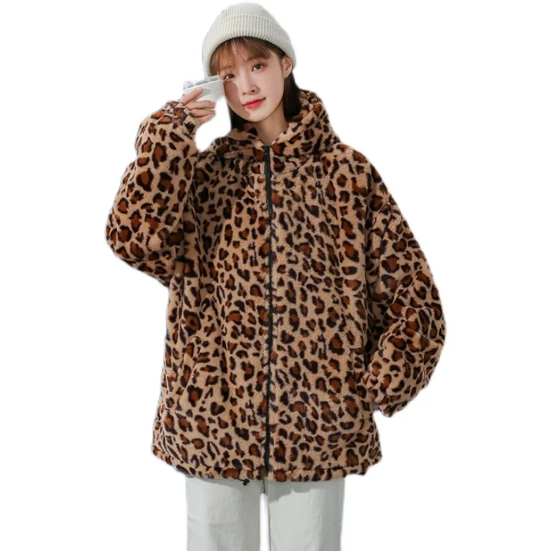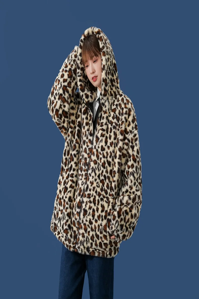 Мужская зимняя куртка с капюшоном, с леопардовым принтом