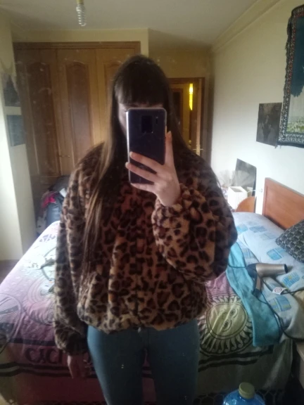 It looks really cute and I‘m glad that I got size L (I usually buy size S or XS) and it was perfectly oversized! It is also really soft and the texture of the fake fur is awesome but sadly both of my pockets ripped open after 1 week without doing anything specific in order for that to happen it was just bad quality and badly sewn, but besides that I really like the jacket. It isn’t really warm but I expected that already so make sure that you wear another light jacket underneath when it’s cold!