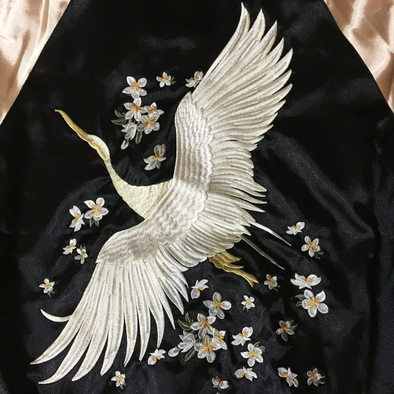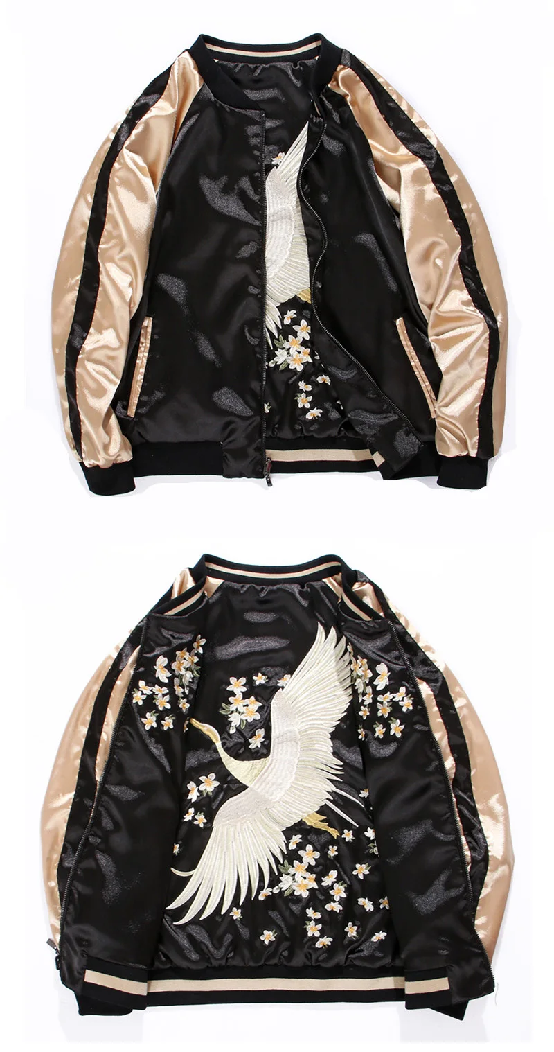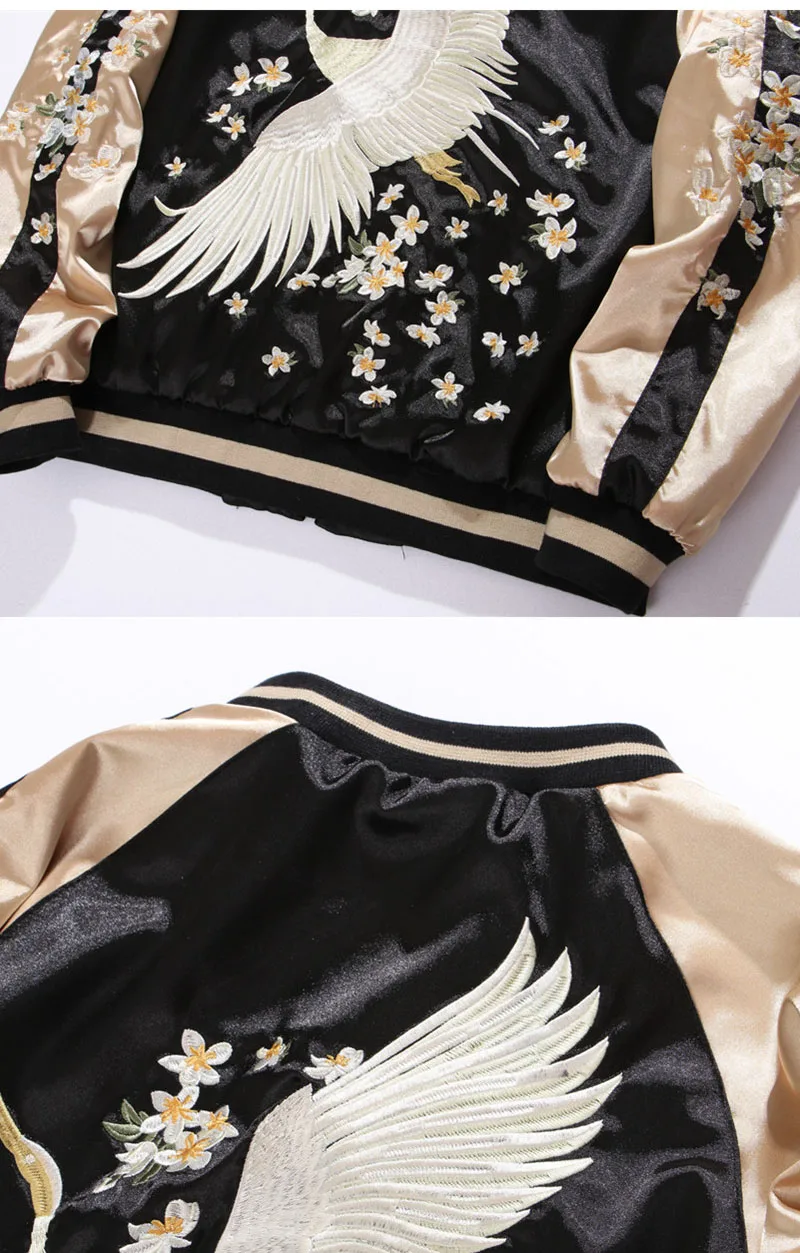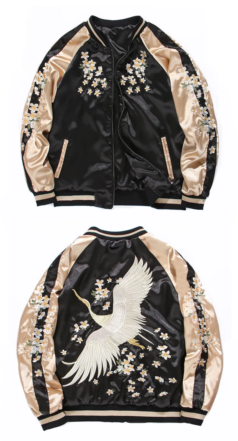 Белая куртка с цветочной вышивкой с Журавлями, гладкие мужские сувенирные весенне-осенние двусторонние бейсбольные повседневные куртки Yokosuka