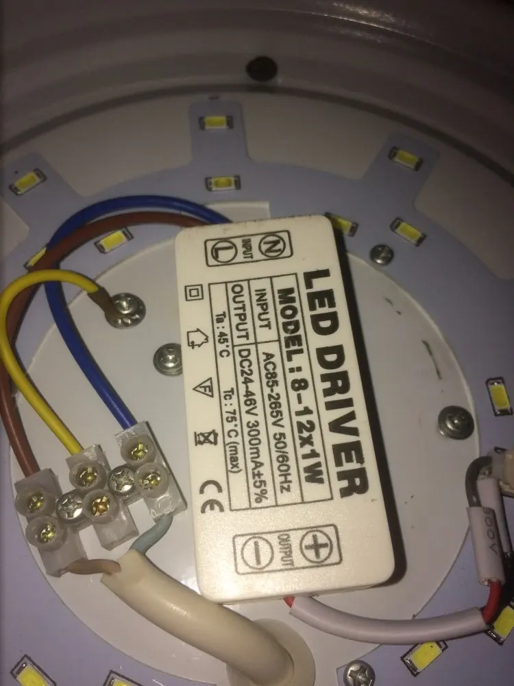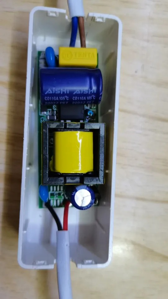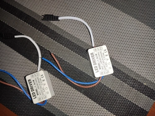 Брал два блока на 3-5Вт (фото 2) и 4-7Вт (фото 3) взамен сгоревшего фото 4 . Завелся только который 4-7Вт (возможно второму не хватает мощности). Работает тихо, не гудит, помех на соседний монитор с динамиками (на котором висит светильник) не дает.