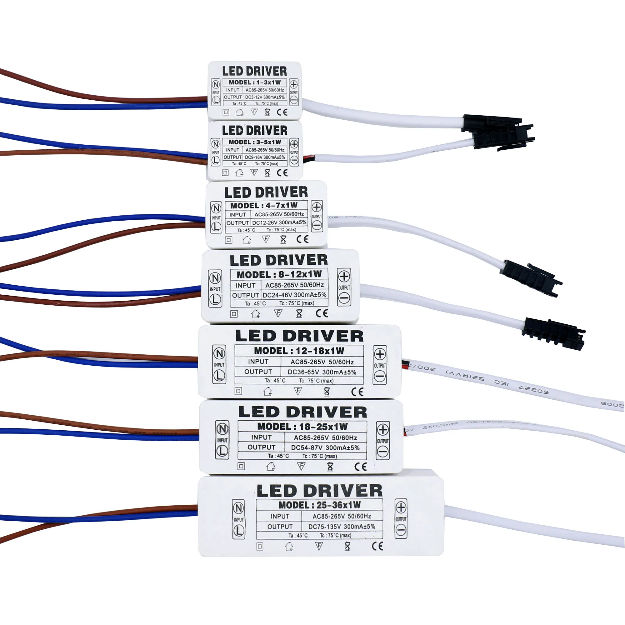 Блок питания для светодиодов светодиодный 300 мА, 1-3 Вт, 4-7 Вт, 8-12 Вт, 18-25 Вт, 36 Вт, 250 мА, 85-265 В переменного тока