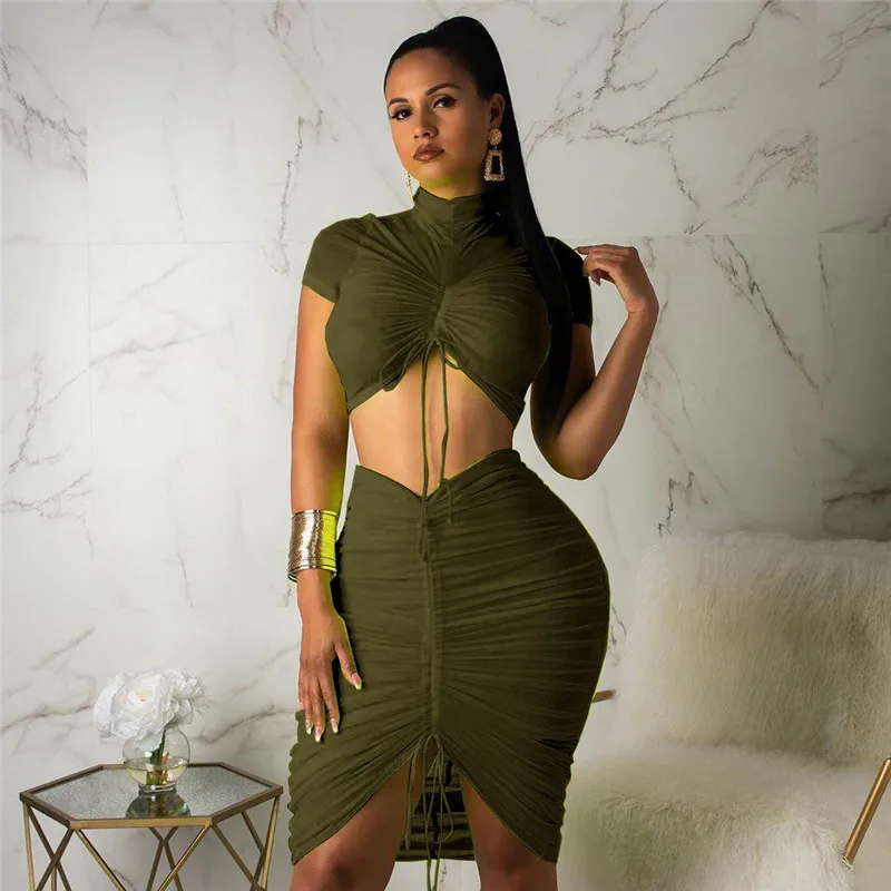 Женский комплект из двух предметов, неоновая повязка на шнурке, водолазка короткий топ с рюшами + мини-юбка, сексуальный наряд для ночного клуба Вечерние
