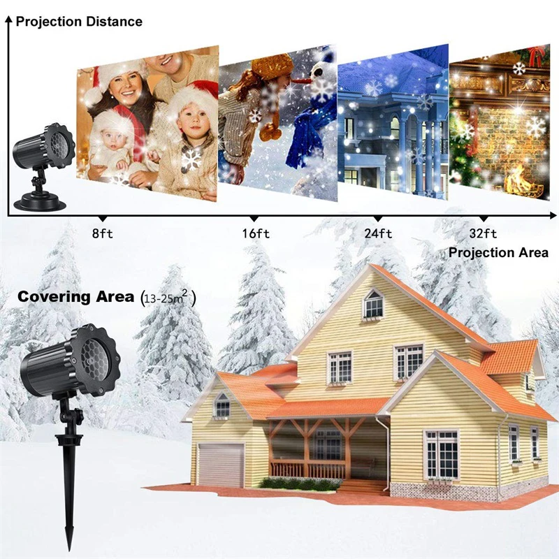 Водонепроницаемый лазерный проектор со снежинкой, светодиодный прожектор на Рождество, Новый Год, сценический светильник, для улицы, для снега, вечерние, для сада, Ландшафтная лампа