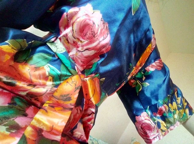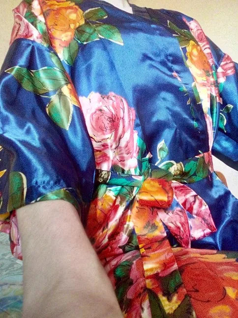 Классный шикарный халат.Сигтетика очень приятная,как атлас.На 102-82-103 свободно.Я в восторге.Рекомендую