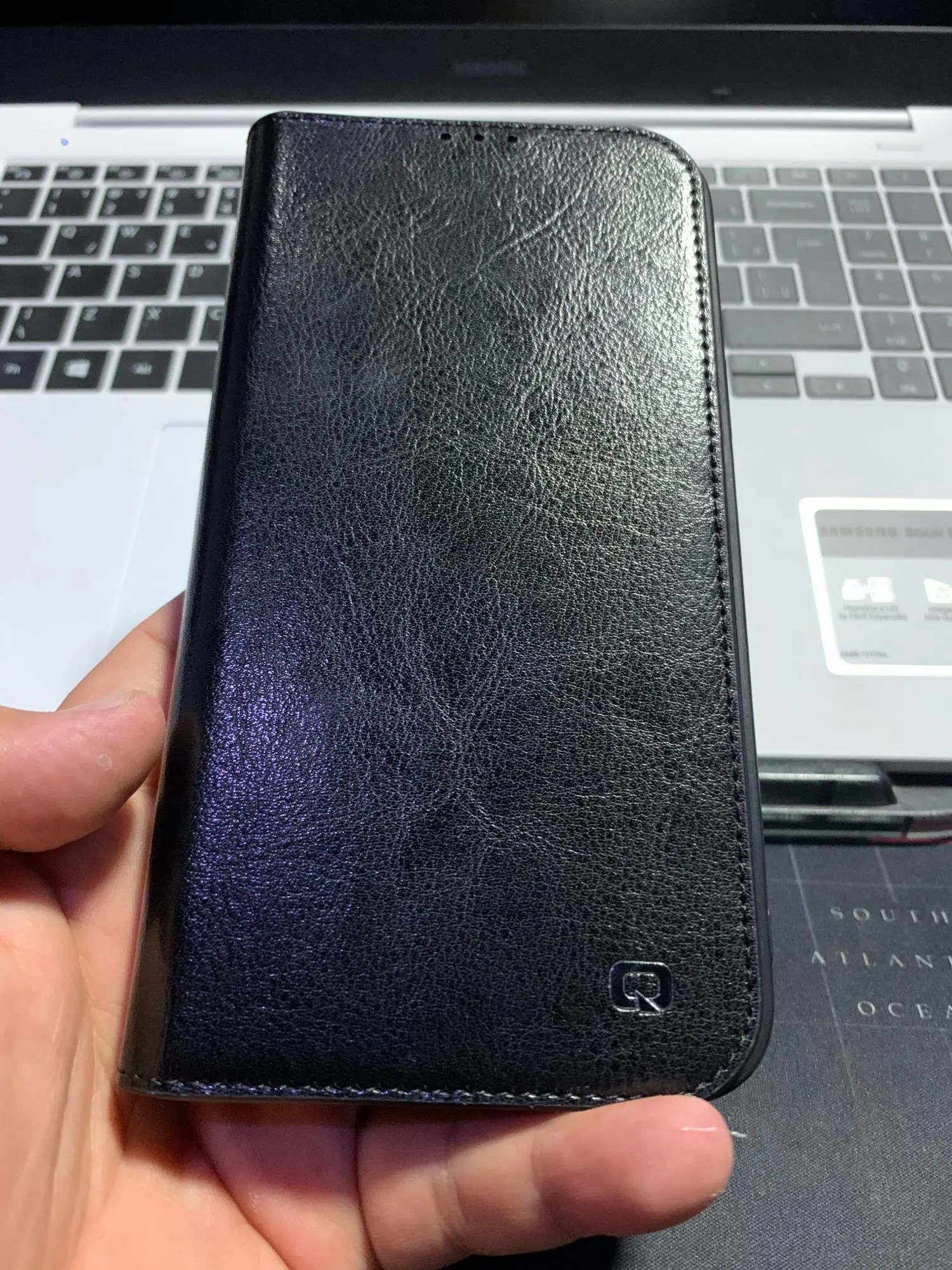 Кожа, но футляр довольно хлипкий, если телефон упадёт, то может разбиться.
