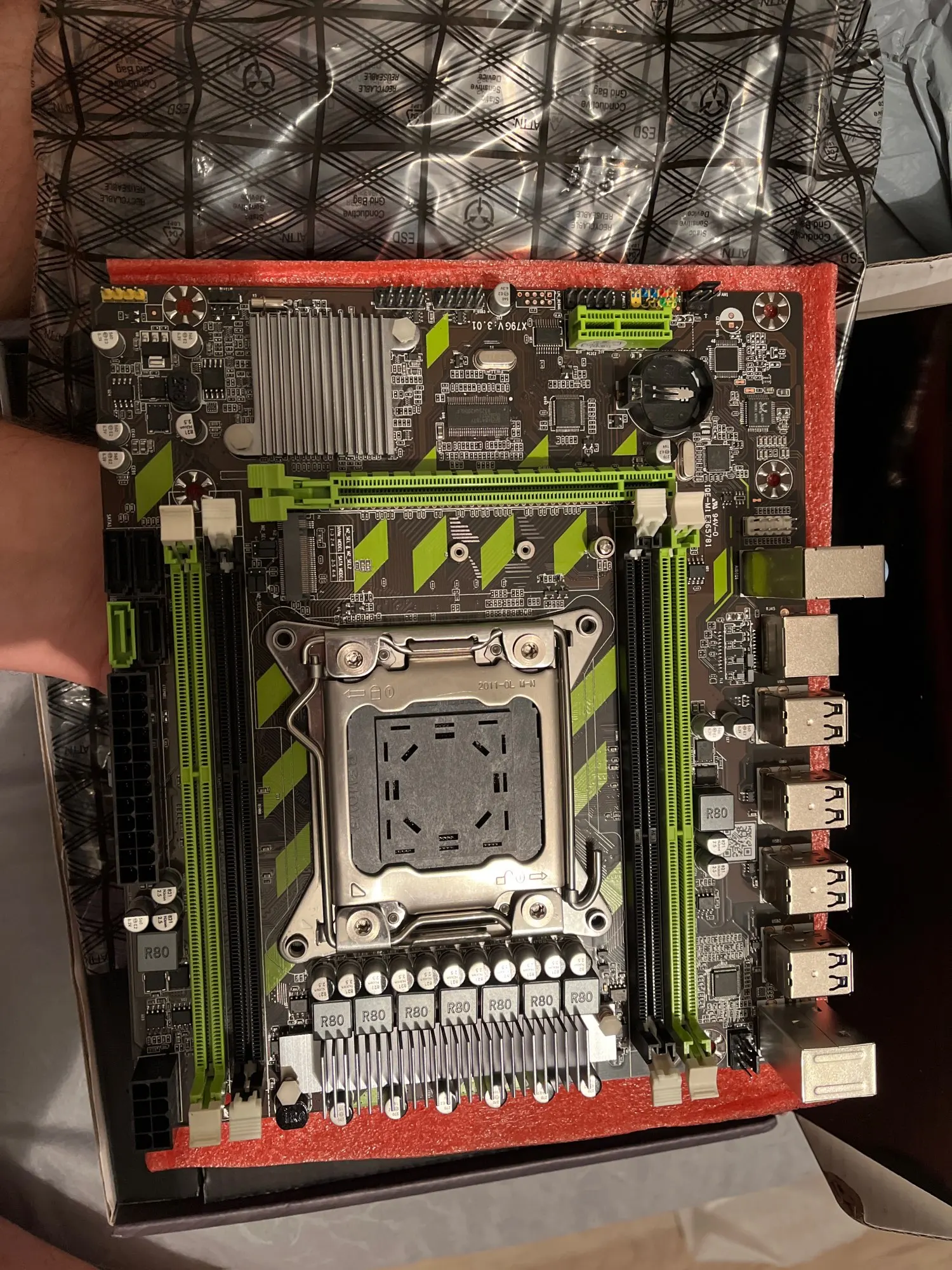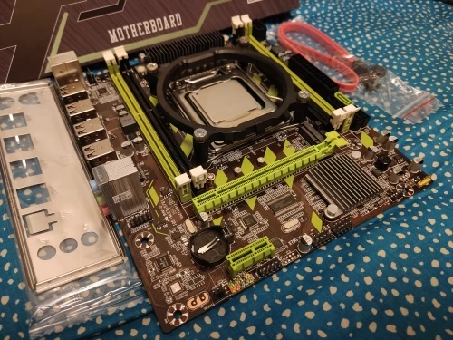 Быстрая доставка, добротная упаковка. В комплекте: пластиковое кольцо, SATA кабель и панелька. Сразу поставил E5-2640, всё работает, ничего не перегревается, каналов памяти два. Плата тянет и E5-2650v2, но ставить E5-2689 не рискнул. NVME полноценный. В целом хорошая плата для ультра бюджетных сборок с приятным дизайном.