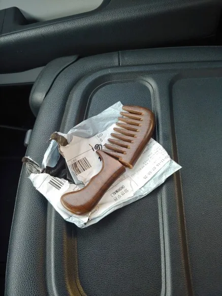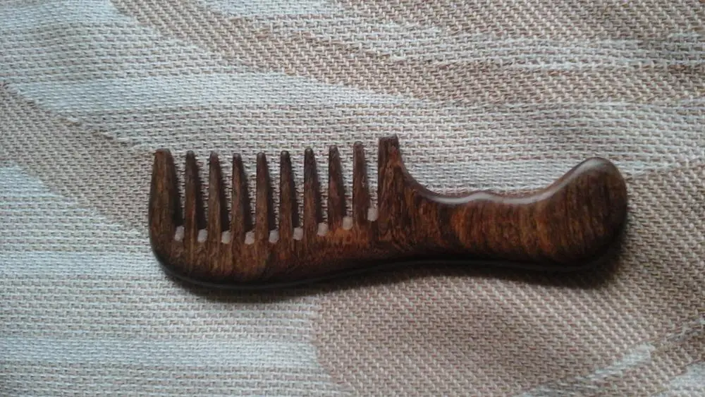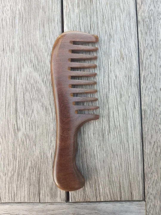 Хорошая древесина тежелая, идеальная форма - приятно держать в руке, идеальный размер и широкое растряние между зубьев, волосы в ней не задерживаются и нет нужды чистить. (То что счесывается сыпится на пол)) На предпоследнем зубе была зазубрина (видно неровности на фото) , в которой застревает и рвётся волос. Внутренняя часть зубьев не полированная и тоже немного сомнительно для волос.
