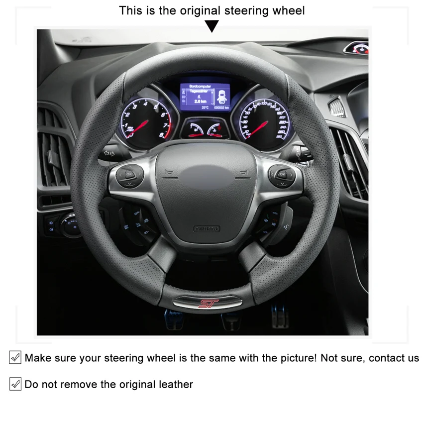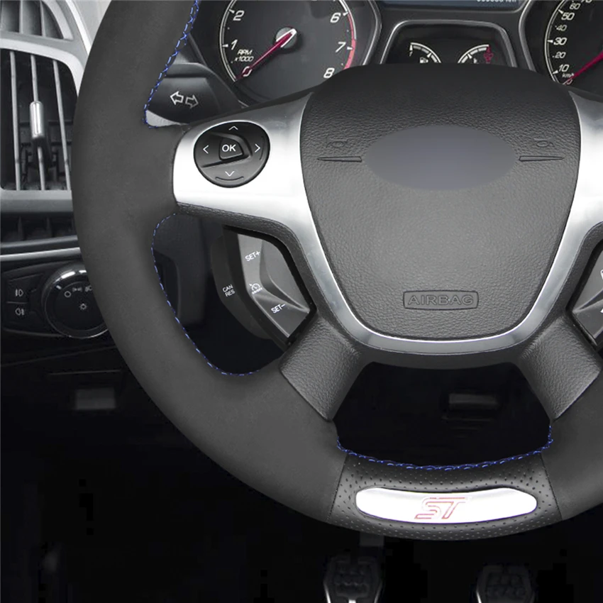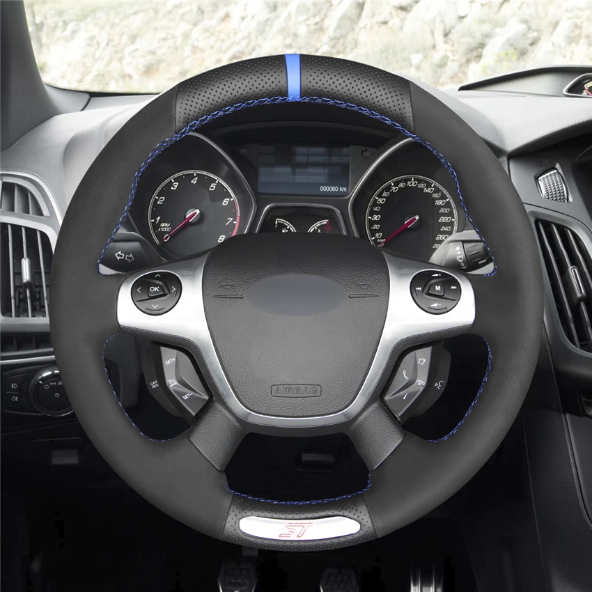 Черный чехол рулевого колеса автомобиля из натуральной кожи для Ford Focus ST 2012 2013 2014