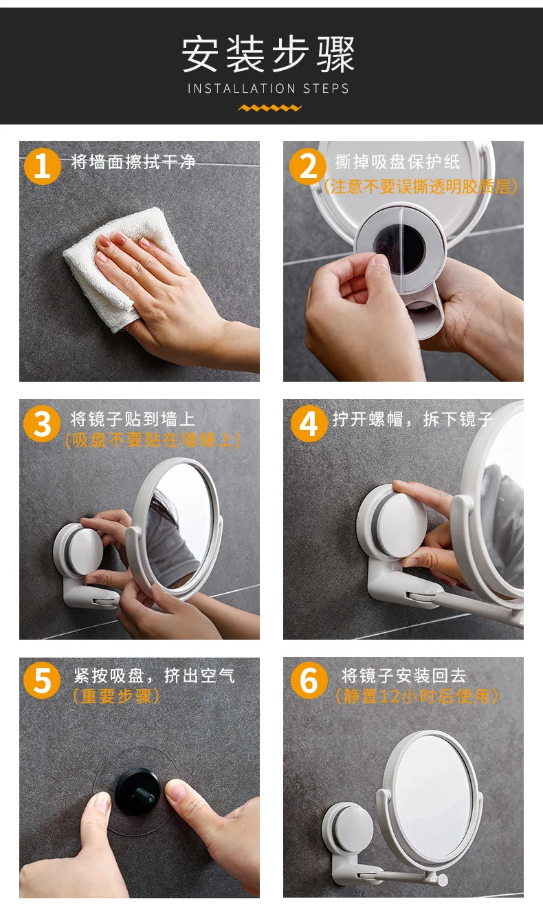 Складное зеркало для макияжа, настенное зеркало для туалетного столика без дрели, поворотное зеркало для ванной комнаты, всасывающее складное зеркало для бритья