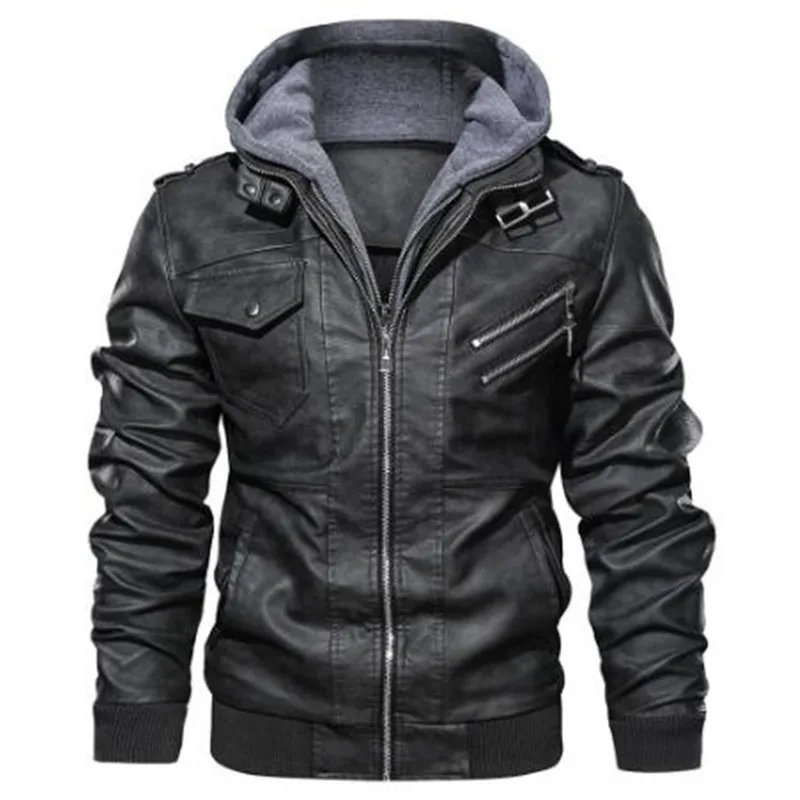 Ветровка мужская кожаная с капюшоном, мотоциклетная куртка из искусственной кожи, теплая бейсбольная верхняя одежда, размера плюс 3XL, Осень-зима