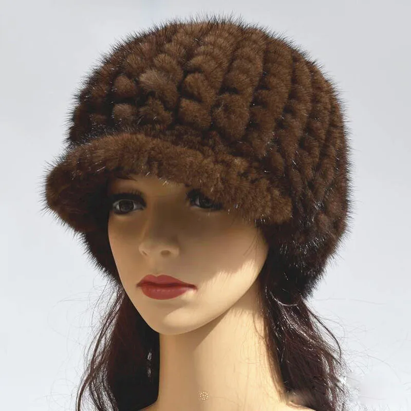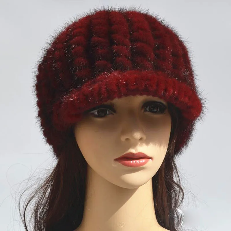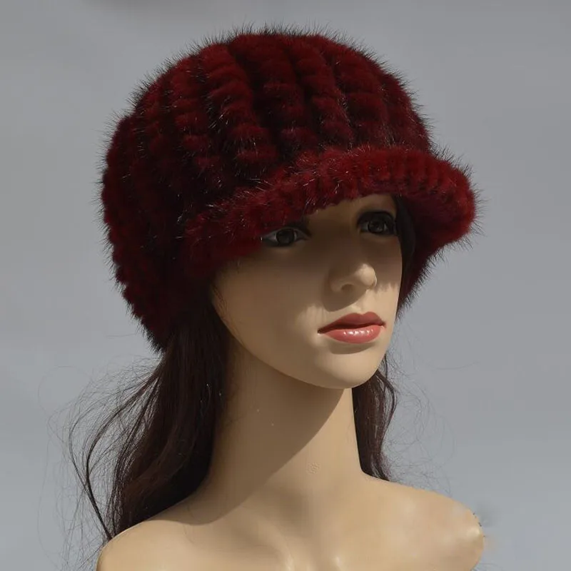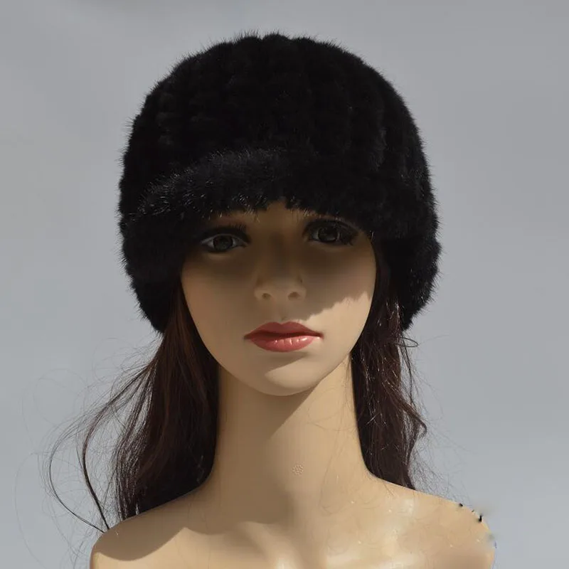 2021 зимняя вязаная шапка из меха норки, Женская Толстая теплая бейсболка из натурального меха, женская вязаная Повседневная Элегантная черная шапка