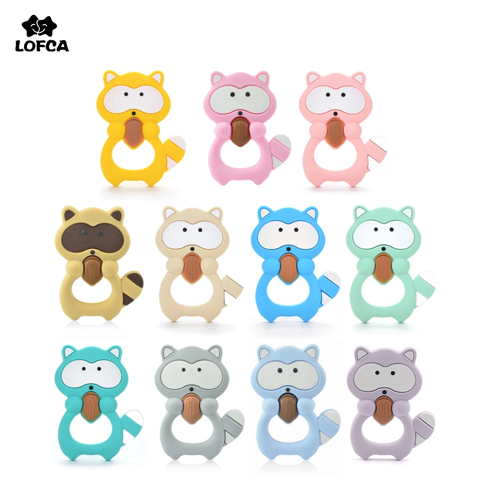 Силиконовый Прорезыватель для зубов LOFCA, енот, для ухода за зубами, с рисунками из мультфильмов, не содержит Бисфенол А, для детских игрушек, Браслет сделай сам
