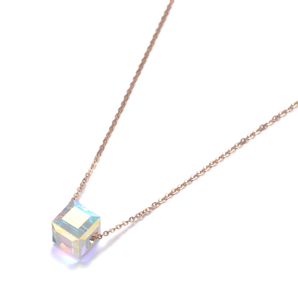 Lokaer модные квадратные CZ подвески из кристаллов ожерелье s для женщин розовое золото и Титан цепочка из нержавеющей стали ожерелье ювелирные изделия N19130