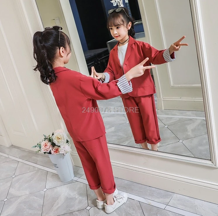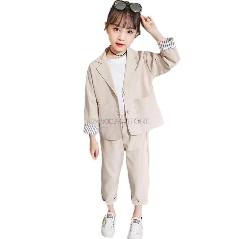 Деловой костюм с пиджаком для девочек, куртка + штаны, 2 предмета, 2019 г., детский комплект одежды для свадебной вечеринки, Школьный костюм для девочек-подростков