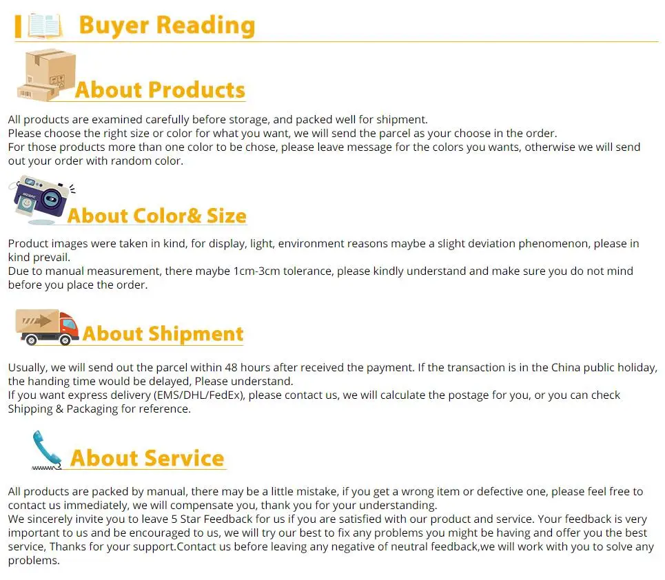 2. Из-за ручного измерения и различных методов измерения, пожалуйста, допускайте отклонение на 1-3 см. Спасибо!