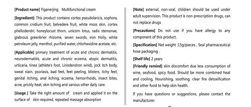 YIGANERJING крем для ухода за кожей, от псориаза, экзематоидных маз...
