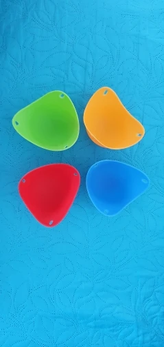 Формочки хорошенькие,такие яркие,силикон в меру плотный,правда присутствует небольшой запах.Помыла-запах уменьшился,думаю ,что выветрится быстро.Как приготовлю яйца-пашот-дополню отзыв.Пришел товар во время.Продавец порядочный,товар рекомендую к покупке.