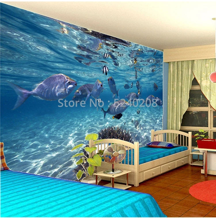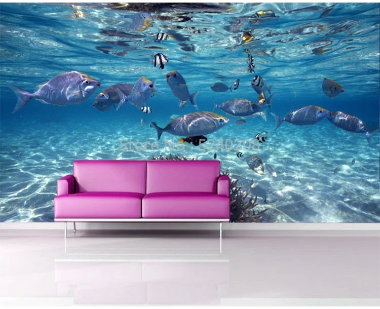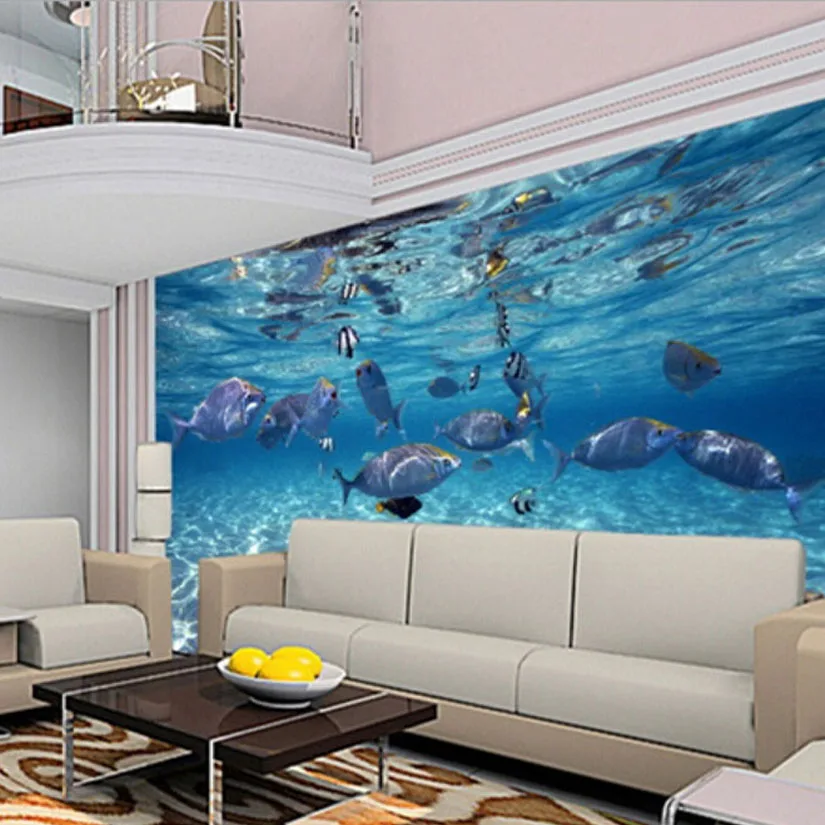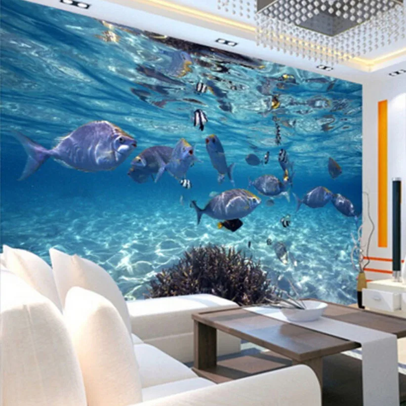 Настенные водонепроницаемые клеящиеся 3D-обои, плотные 3D-обои с изображением подводного мира рыбы, для детской комнаты, ванной