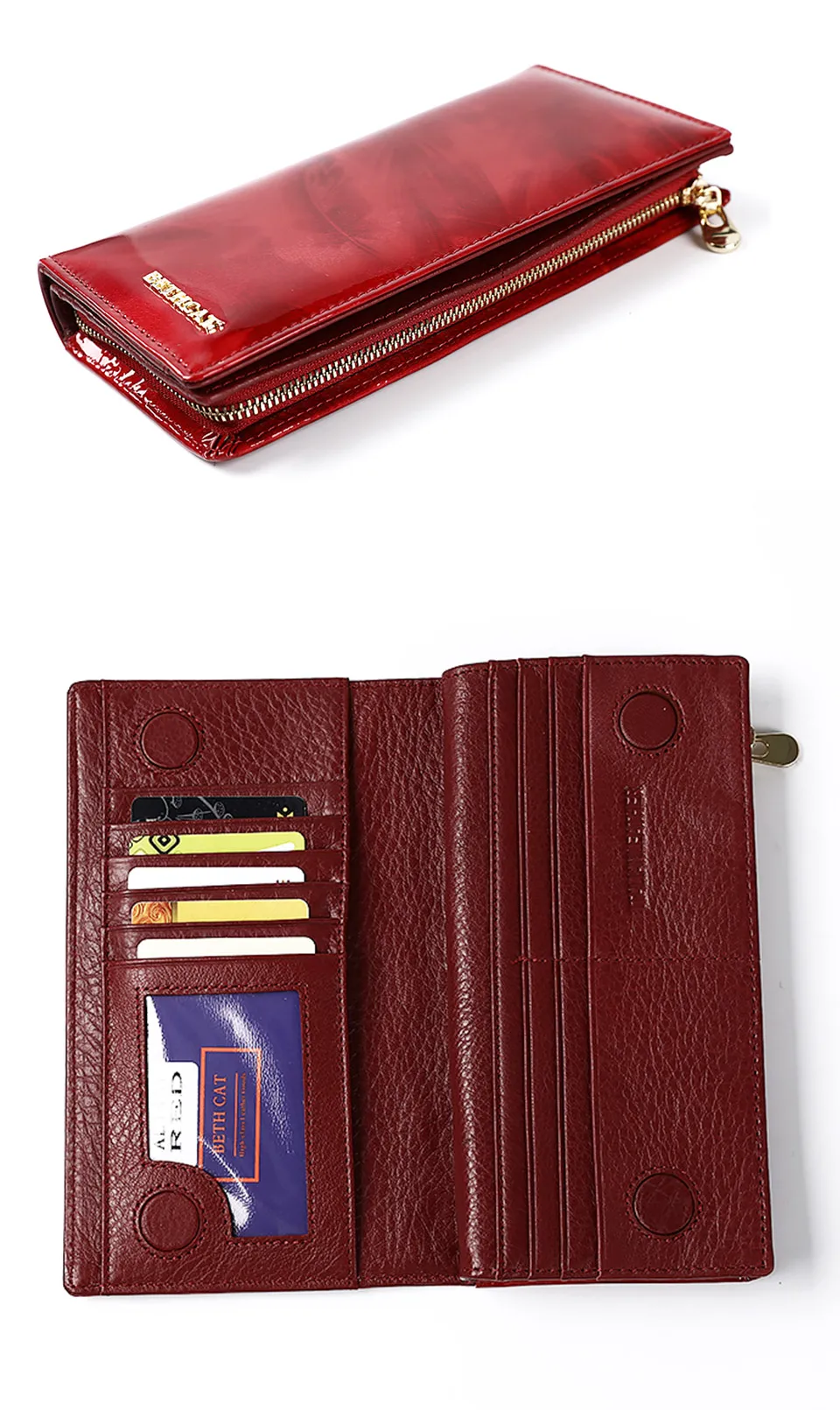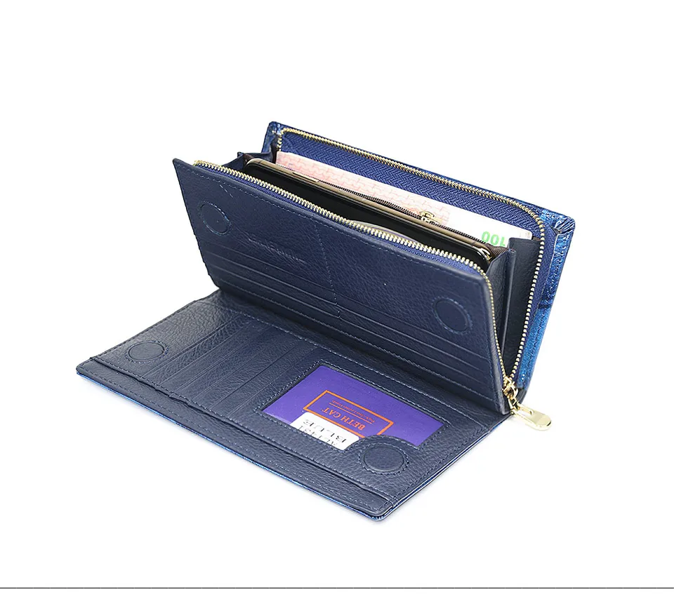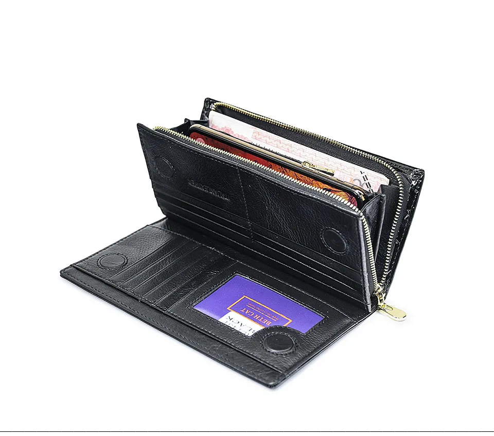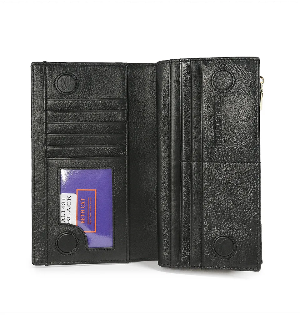 Многофункциональный с 12 слотами для карт (включая 1 удостоверение личности),1 Полноразмерное отделение для купюр, 1 карман для наличных денег на кнопке и 1 чехол для телефона на молнии. Держите ваши кредитные карты, наличные, монеты, банкноты, квитанции, чековую книжку и ваш сотовый телефон хорошо организованными. Ультра практичным решением;