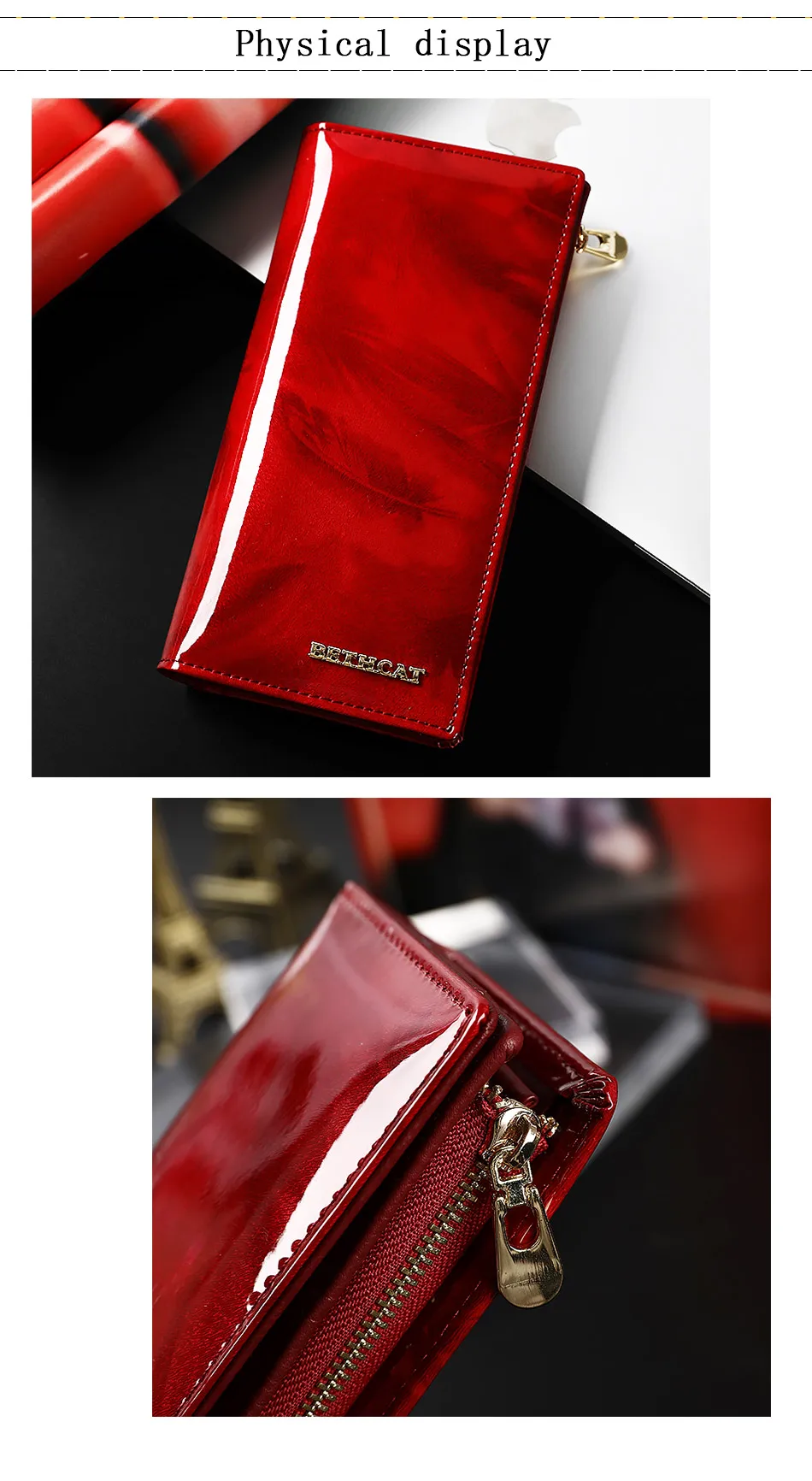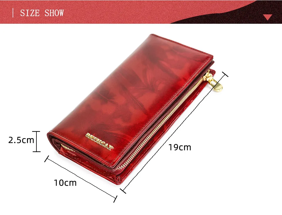 Размеры: 7,56 "Д x 4,13" Ш x 0,98 "в (19x10x2,5 см), это просто размер для кошелька, который вы можете просто держать на руке или положить в сумку. Подходит для iPhone X XS Max 7 8 Plus;