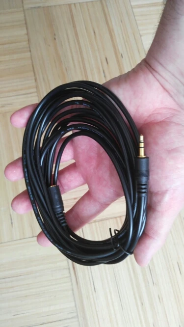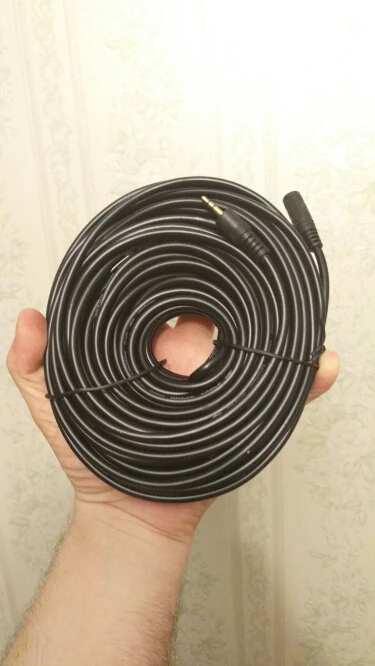 Дина кабеля 4,5 метра вместо 5м. Разъём папа джек 3,5 мм сделан не по стандарту, диаметр занижен, и разъём выпадает из гнезда. Не рекомендую к покупке. По спору деньги не вернетё, потому что на фото это не покажешь.