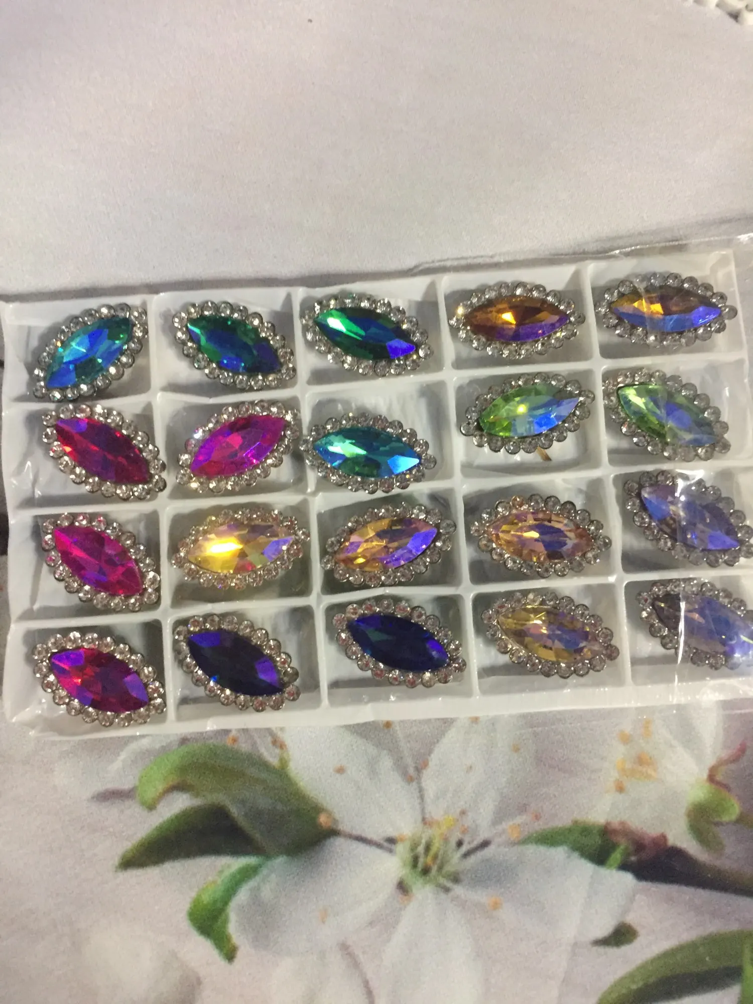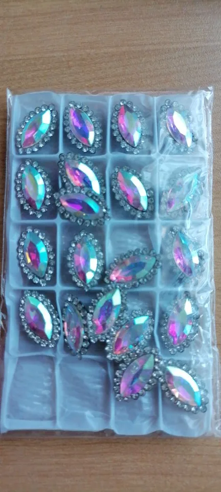 Кристалл AB 7*15 мм, стразы с серебряными лапами 20 шт.лот, в форме маркизы наветты, пришивные стразы, свадебное платье сделай сам