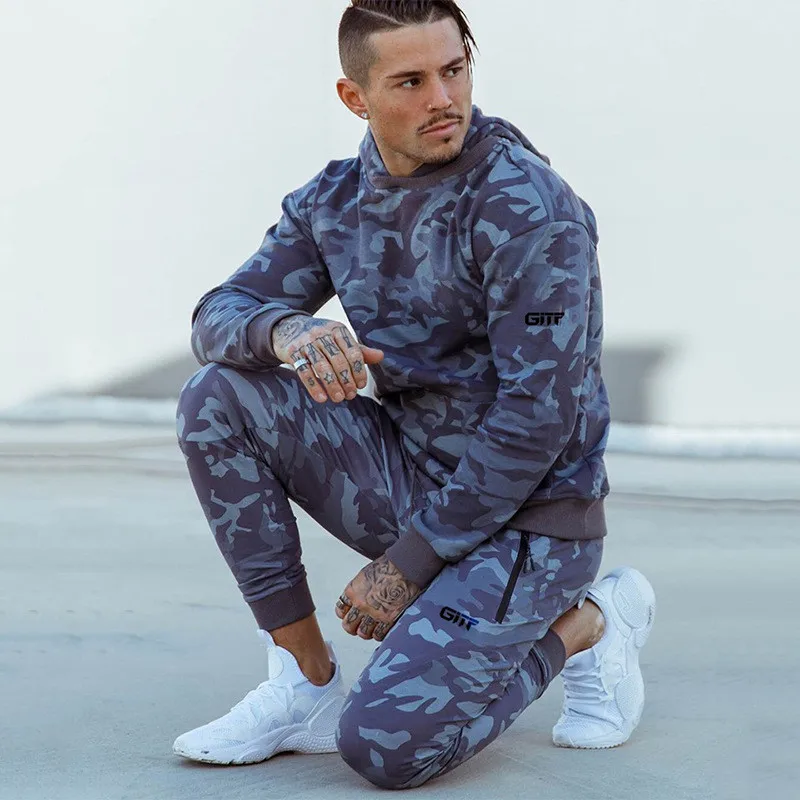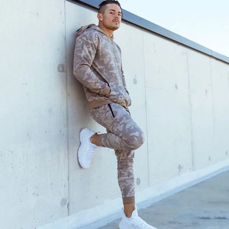 Спортивный костюм GYMOHYEAH мужской, брендовый костюм для фитнеса, камуфляжная Толстовка с длинным рукавом и штаны, повседневный тренировочный костюм