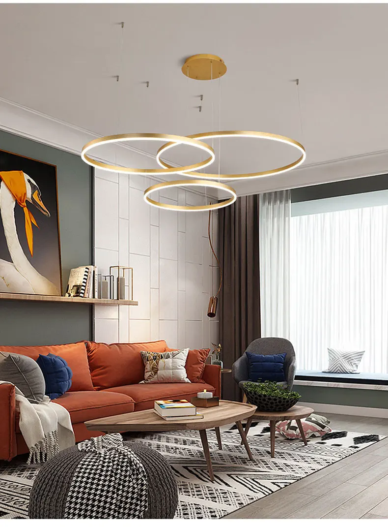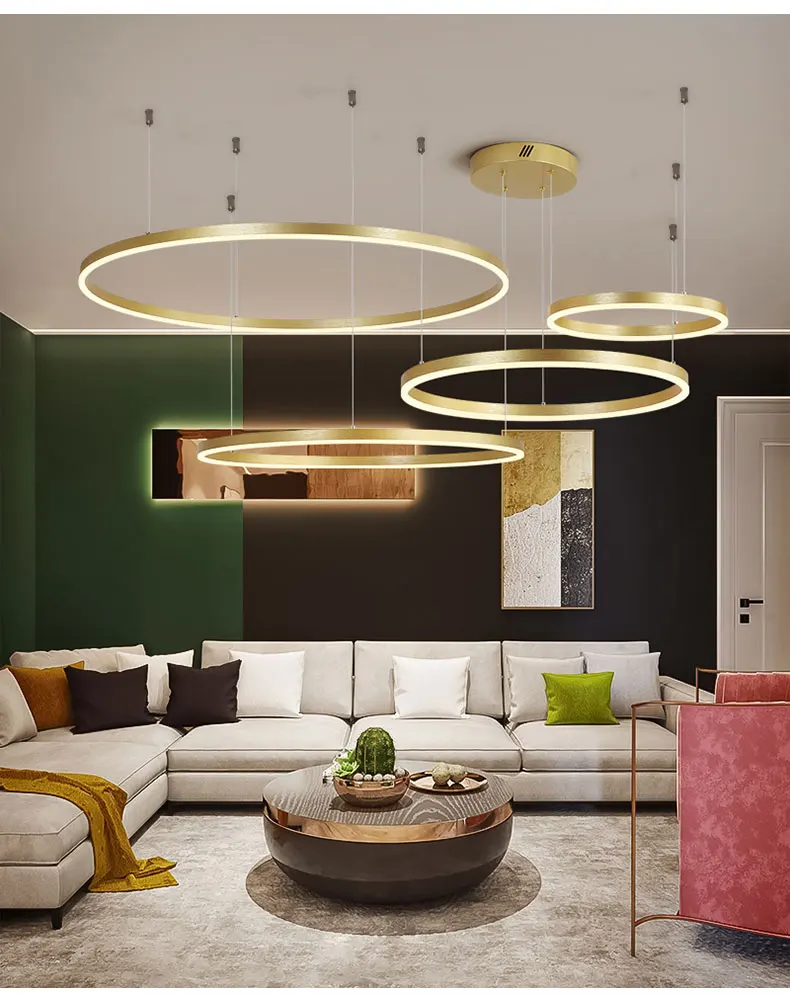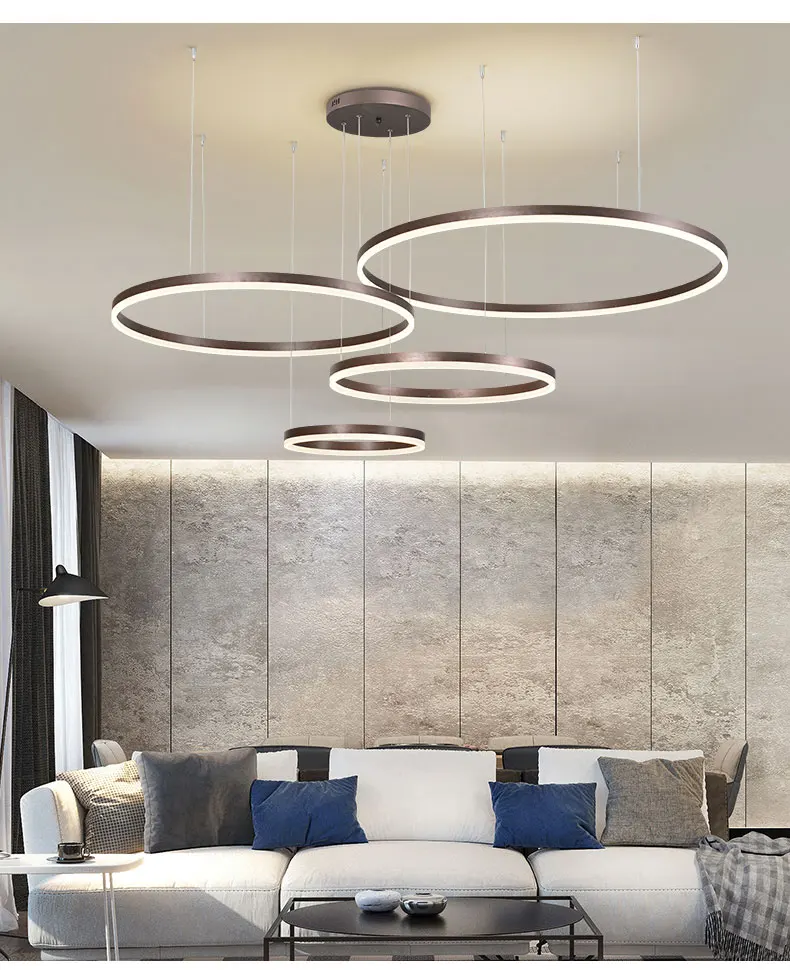 Минималистская современная светодиодная люстра, домашнее освещение, матовые кольца, Потолочная люстра, подвесной светильник золотого и кофейного цвета