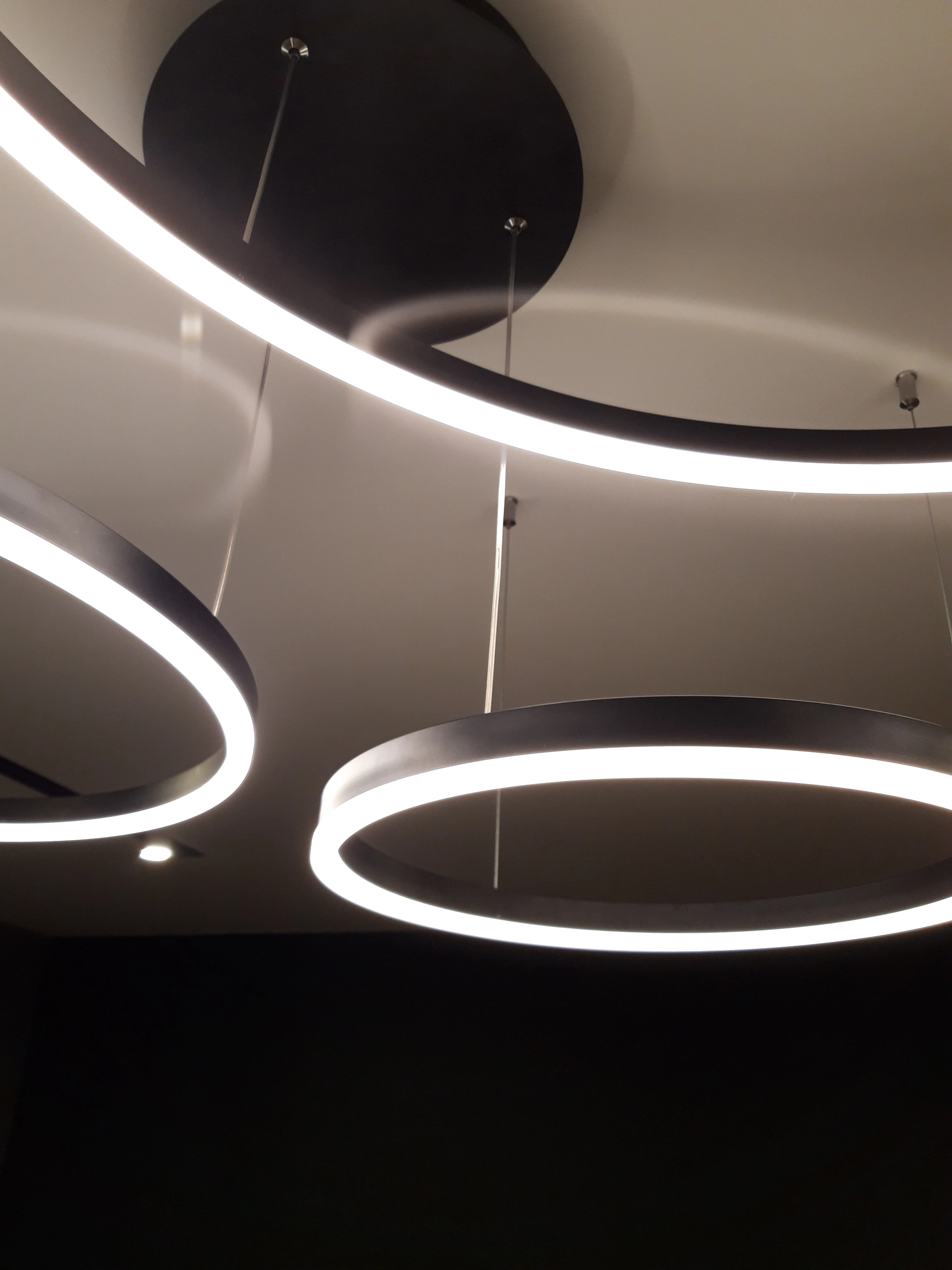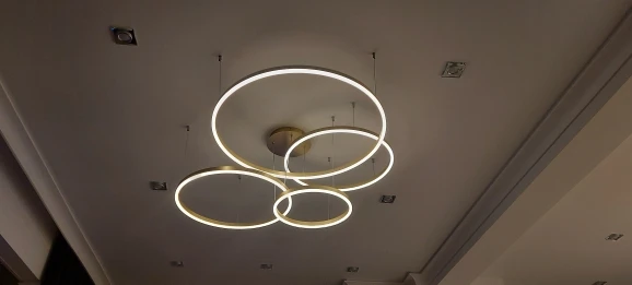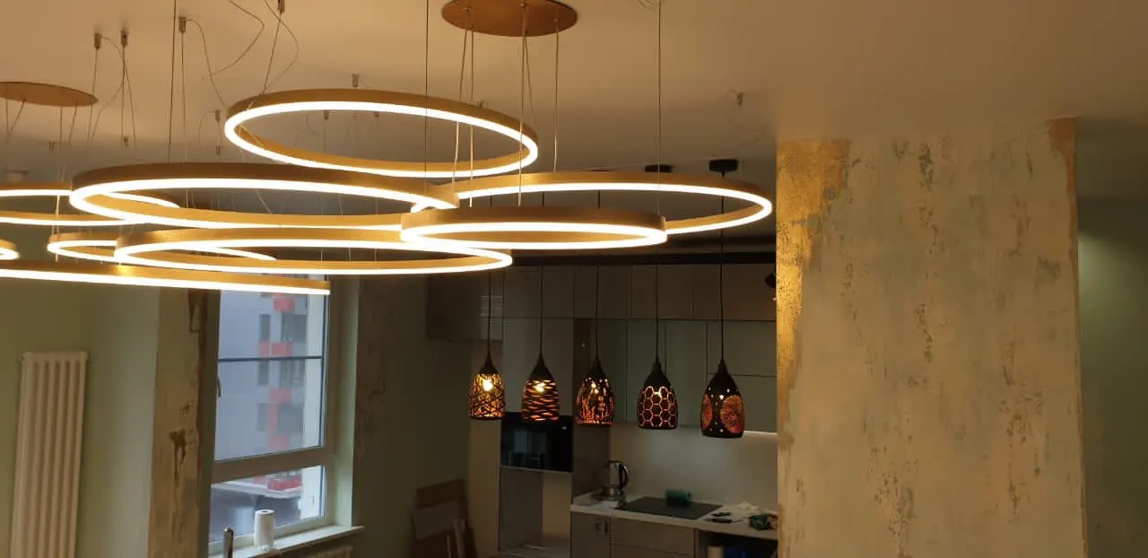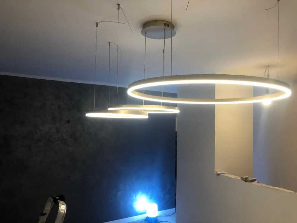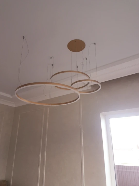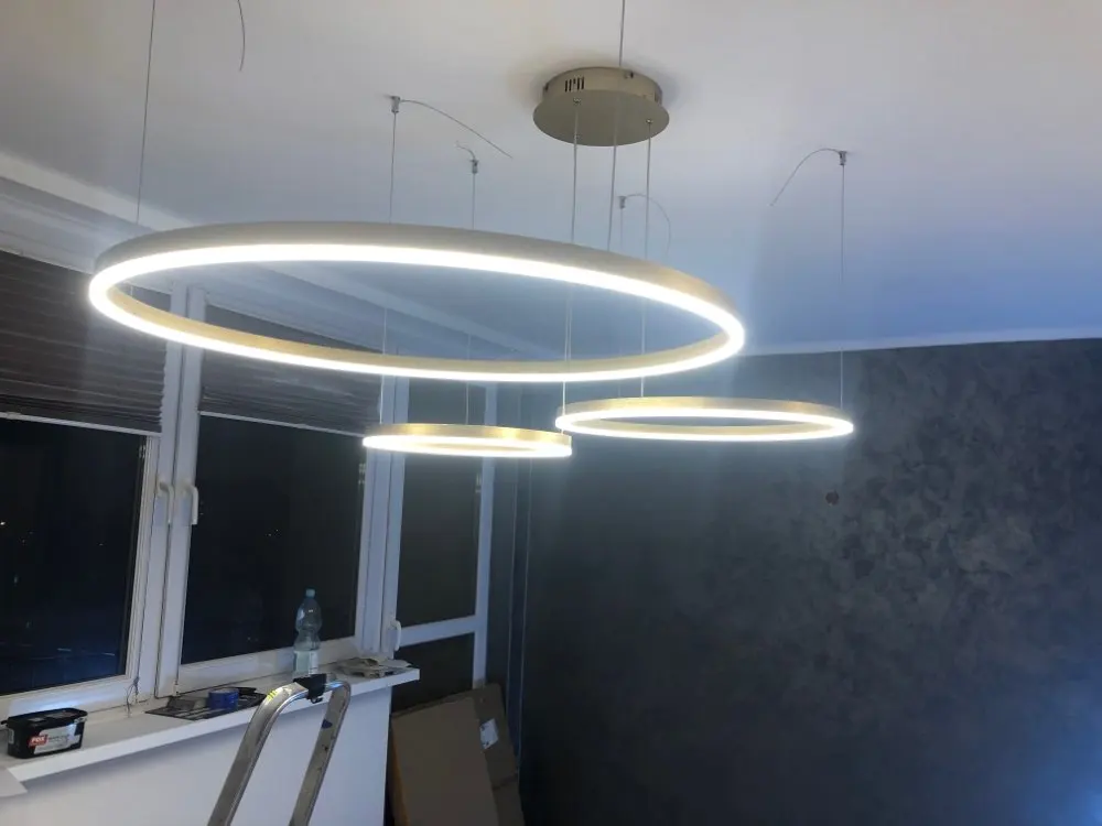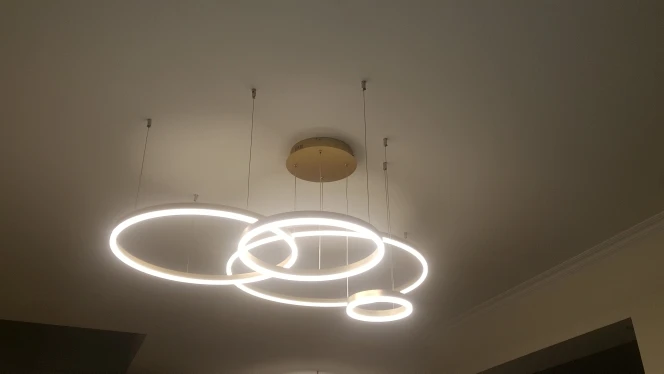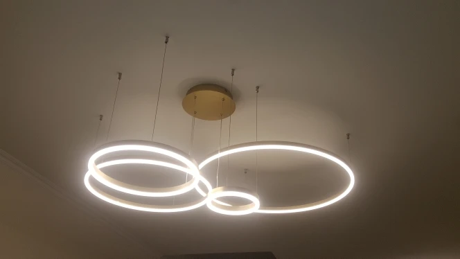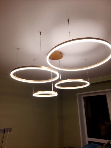 Клевые круги. Быстро дошли, до двери компания дпд. Димируются и меняют теплоту света с пульта. Внимательно с закладными под крепления, если потолок натяжной. Из минусов: кольца нельзя разделить, т.к. через верхние проходит провод от нижних. Это значительно усложняет монтаж или приходится упражняться с паяльником. Покупкой довольна. Результат на фото.