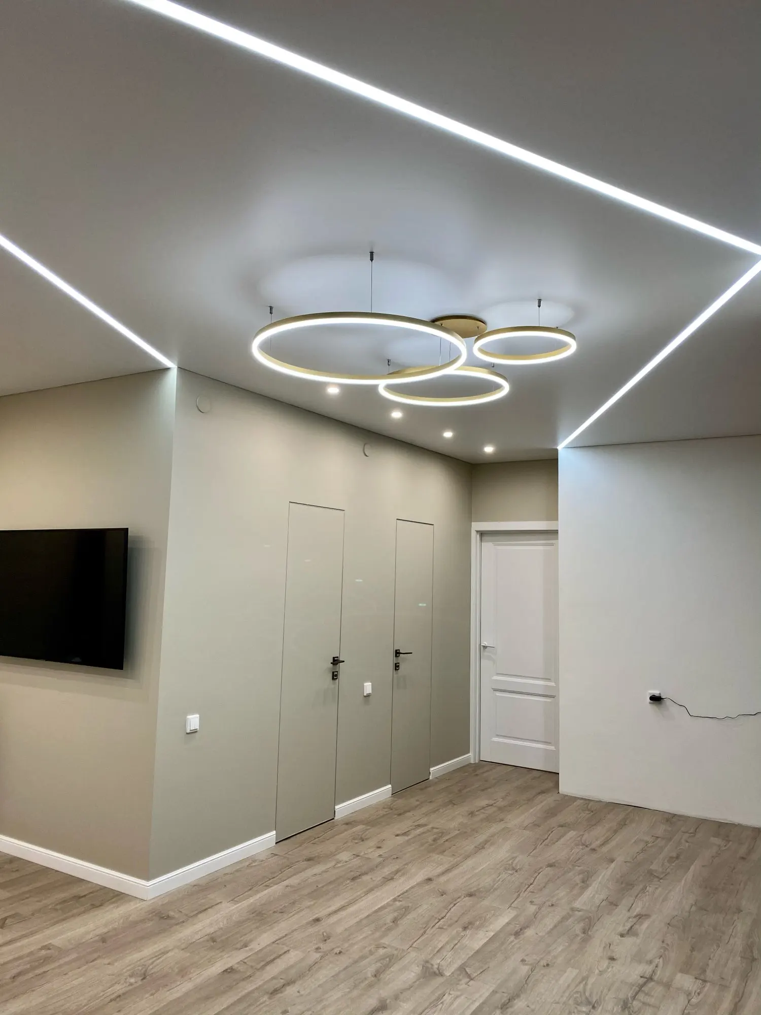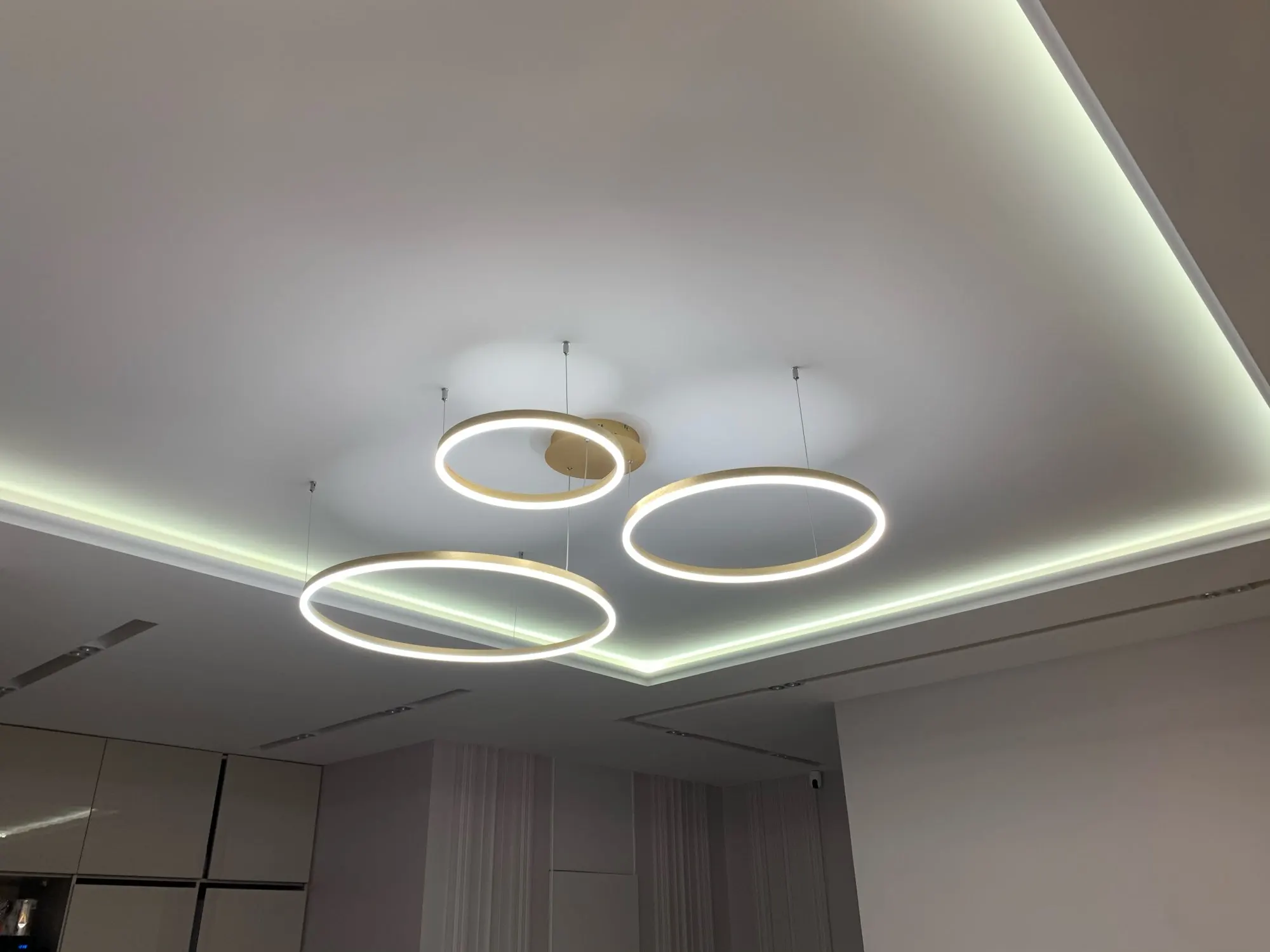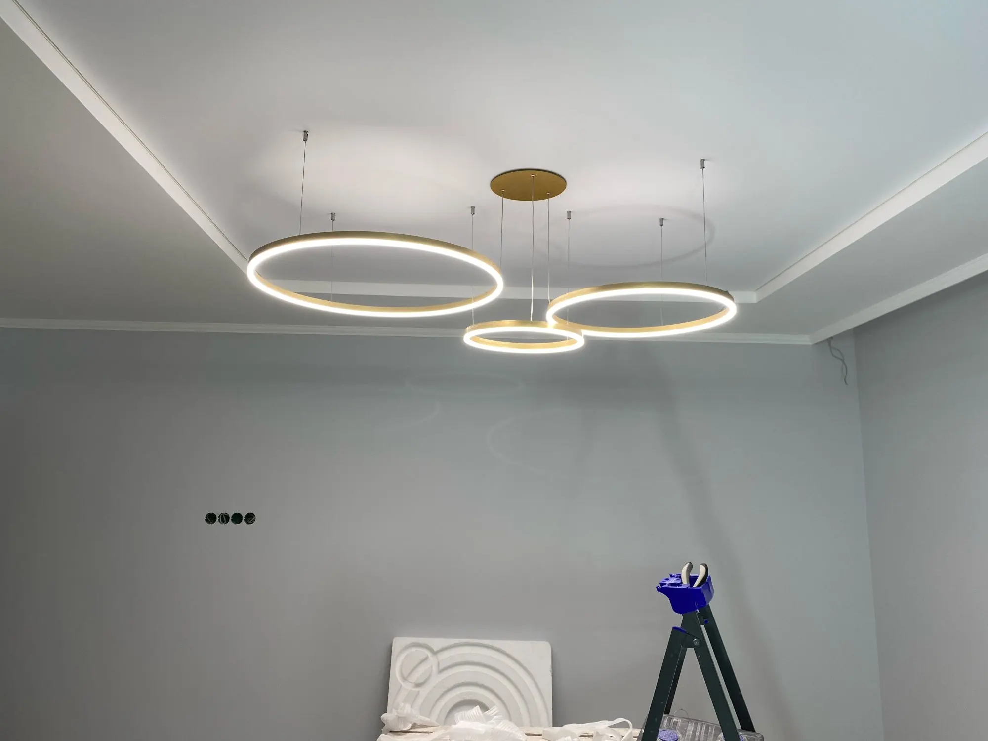 Клевые круги. Быстро дошли, до двери компания дпд. Димируются и меняют теплоту света с пульта. Внимательно с закладными под крепления, если потолок натяжной. Из минусов: кольца нельзя разделить, т.к. через верхние проходит провод от нижних. Это значительно усложняет монтаж или приходится упражняться с паяльником. Покупкой довольна. Результат на фото.