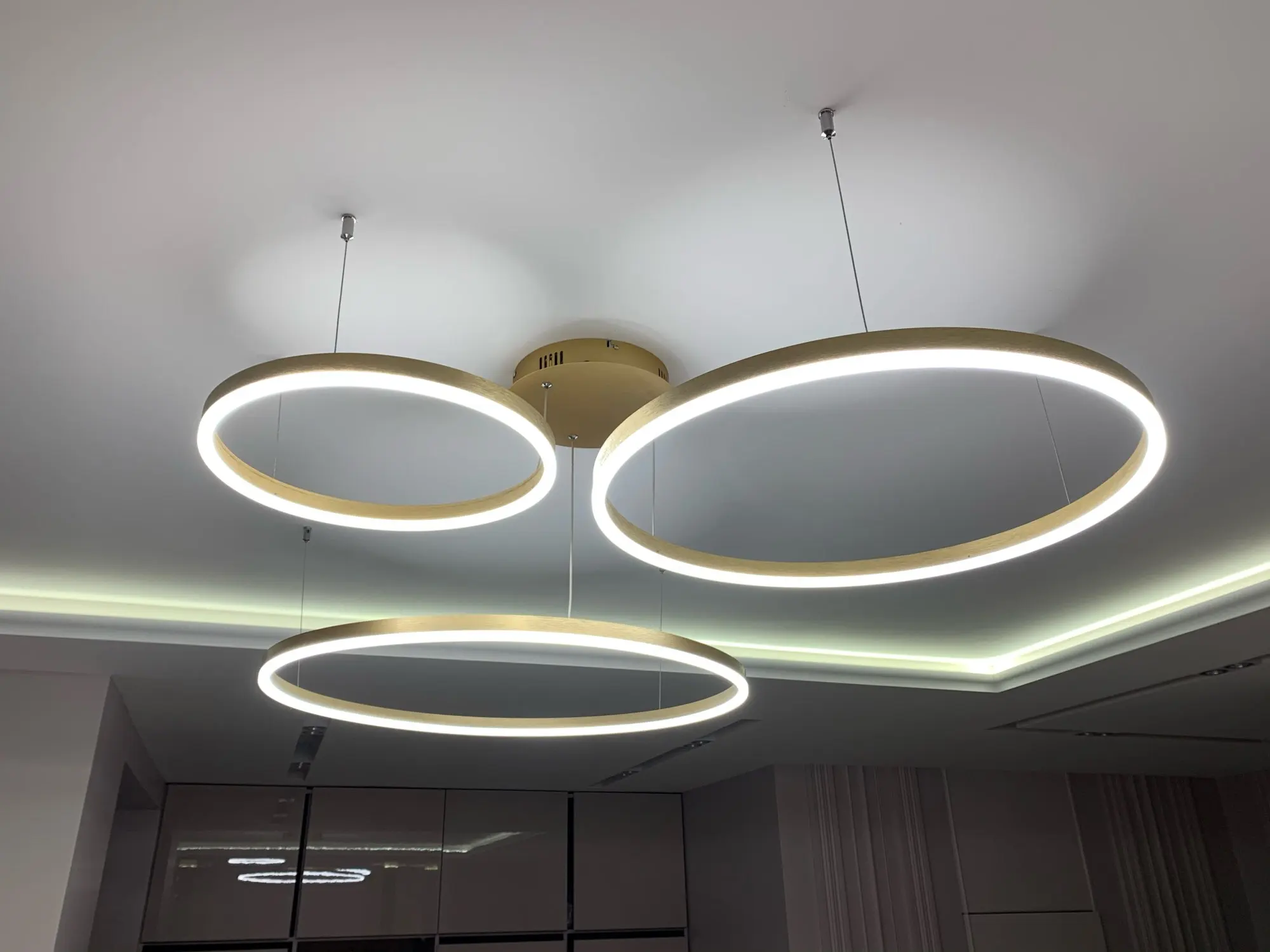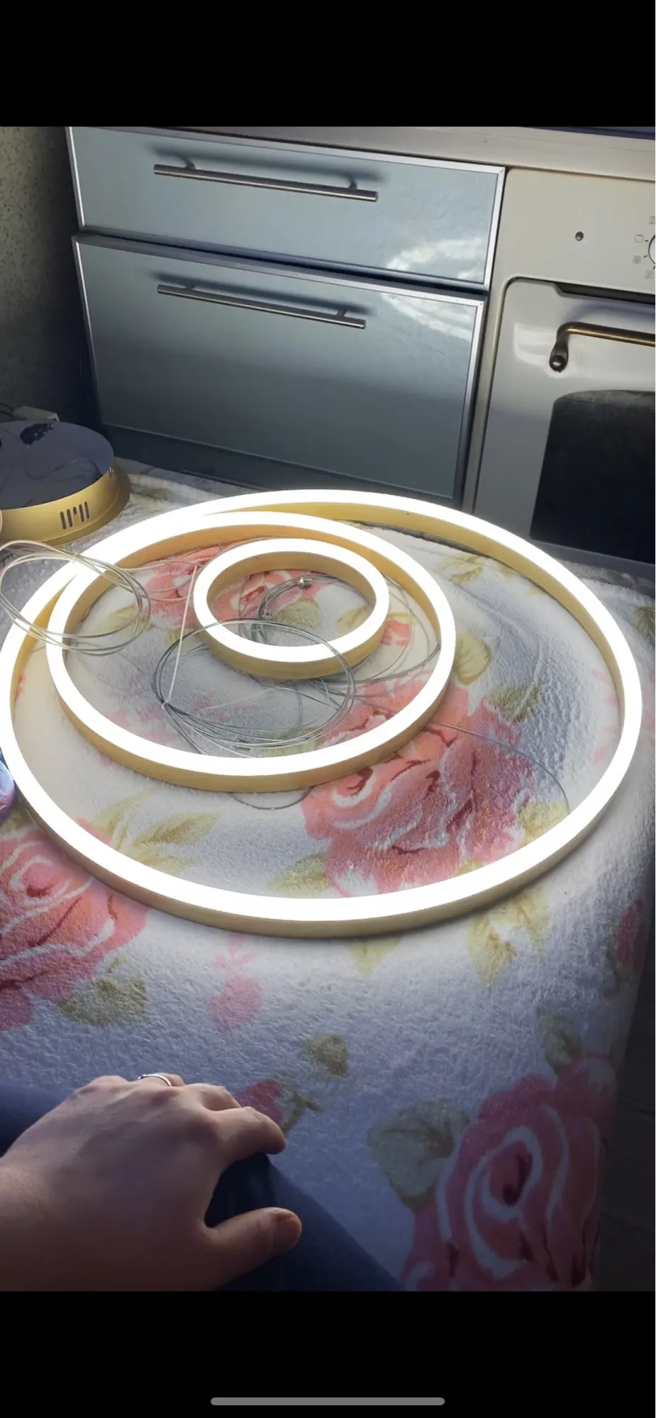 Страна: PL Lampshade Color: Gold frame Emitting Color: Dimmable with remote Wattage: 40 60 80CM 3Rings Ships From: Spain Доставка: DPD_ES 21.11.2020