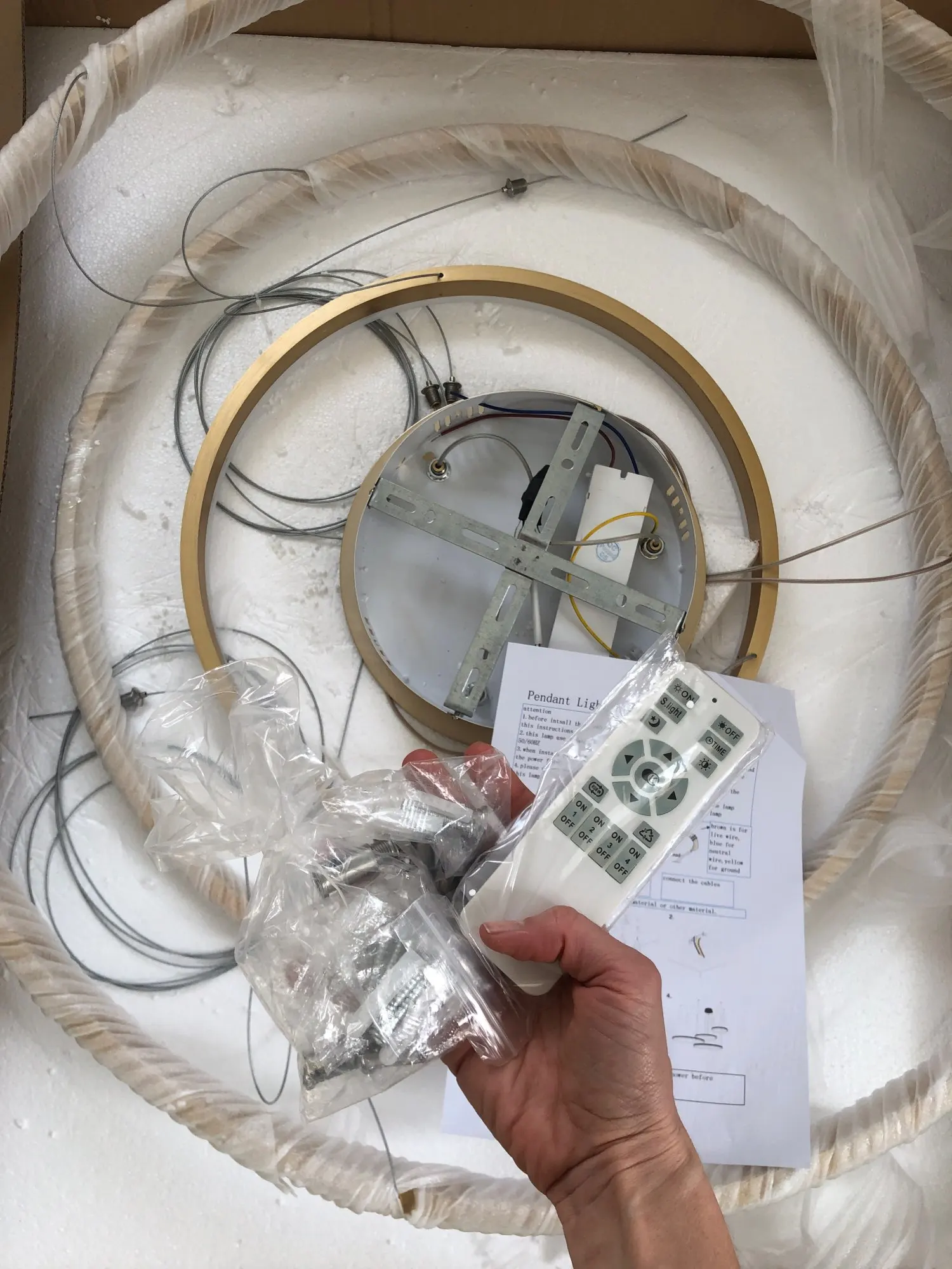 Страна: ES Lampshade Color: Gold frame Emitting Color: Dimmable with remote Wattage: 40 60 80CM 3Rings Ships From: Spain Доставка: Correos Express 17.10.2020