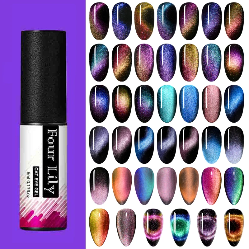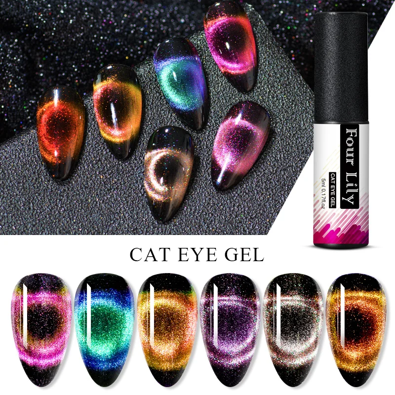 Гель-лак для ногтей FOUR LILY 9D Galaxy Cat Eye, 5 мл, хамелеоновый магнитный лак для кошачьего глаза, долговечный Блестящий УФ светодиодный лак для ногтей