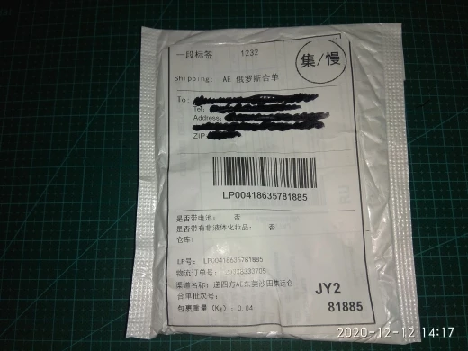 Страна: UA Color: Black 10PCS Доставка: Cainiao Super Economy 19.12.2020