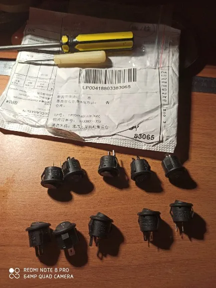 Выключатели пришли на Укрпочту за 35 дней. Не которые переключаются легко, а к не которым надо прилагать усилие чтоб переключить. Во общем надо их разрабатывать. Не надо возится лобзиком, а потом надфилем, просто просверлил на 16 мм и все готово.