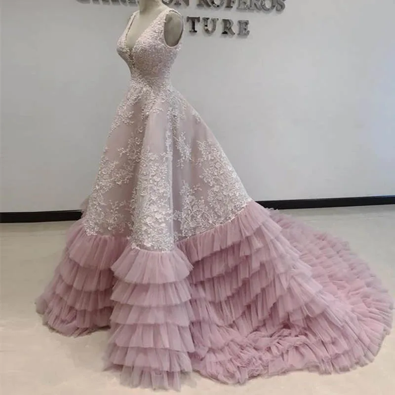 Женское вечернее платье с оборками, розовое платье с V-образным вырезом, юбка из тюля для выпускного вечера