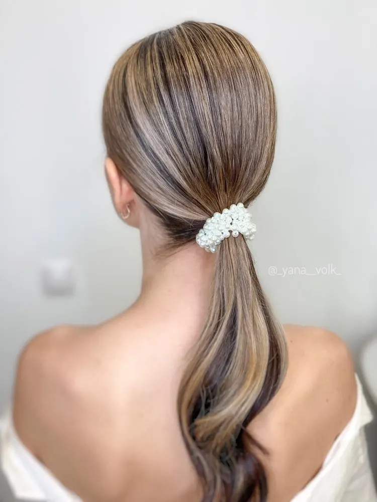 Резинка для волос женская, эластичная, с жемчужными бусинами
