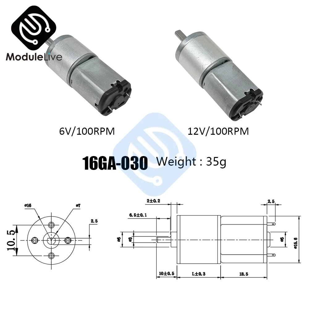 Редукторный двигатель 16GA-030, 6 в, 12 В, 30, 60, 100, 150, 200, 300 обмин