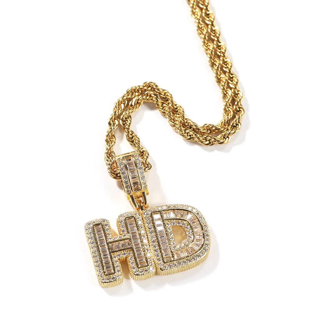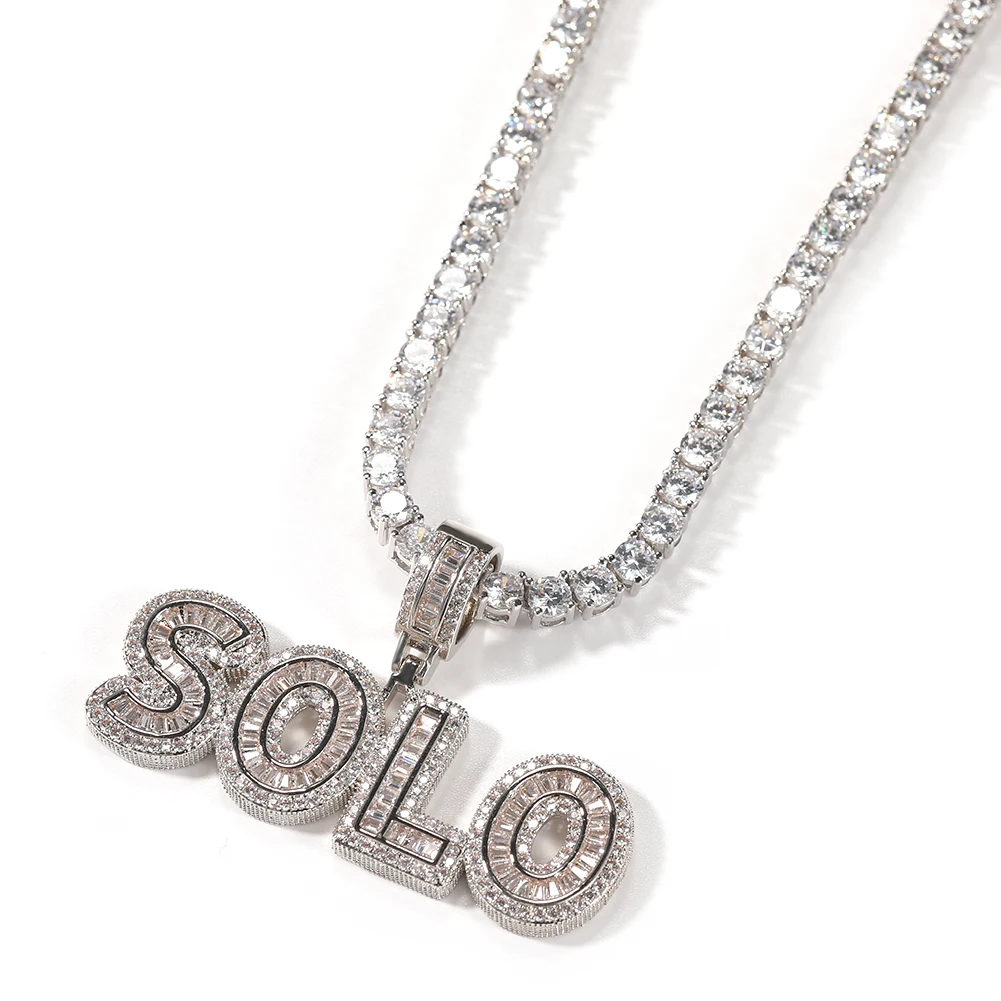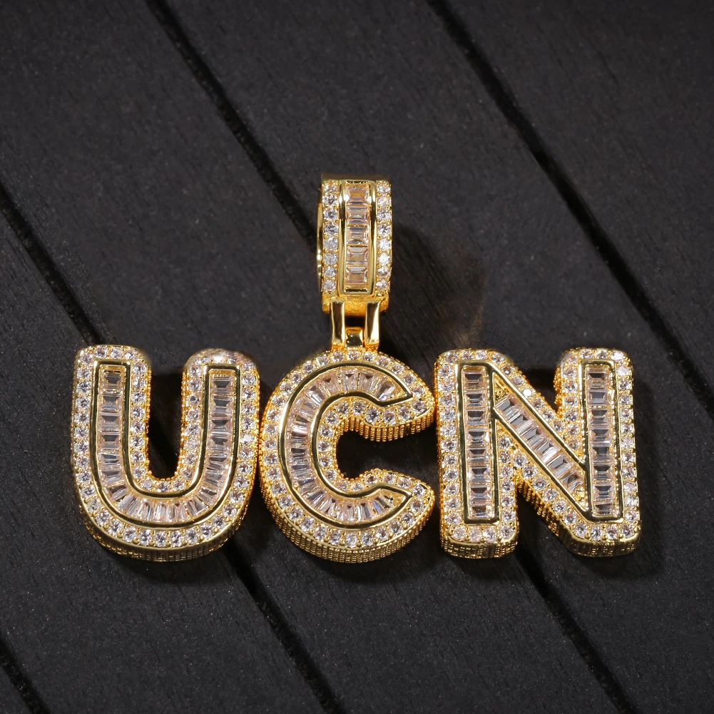 Шикарный король кубический циркон маленький багет начальные буквы кулон ожерелье слова с 4 мм CZ теннисная цепочка Ювелирные изделия