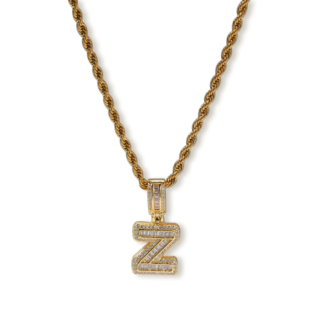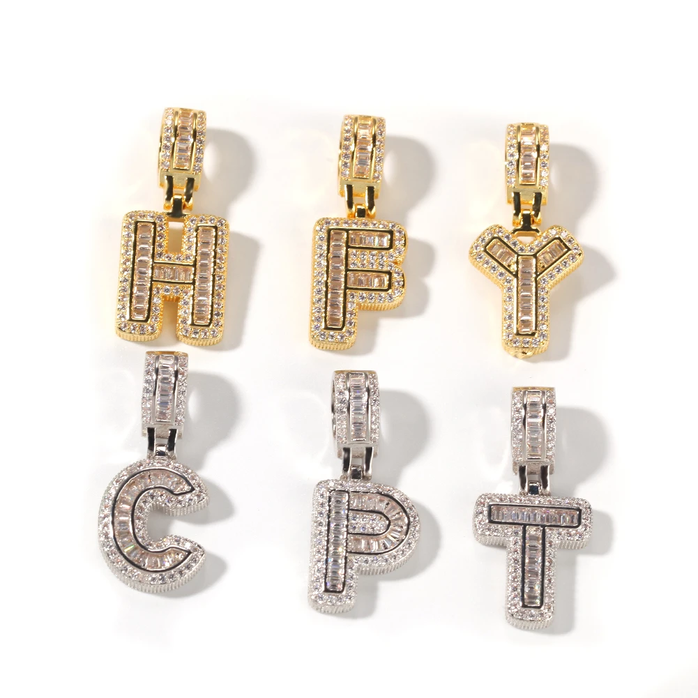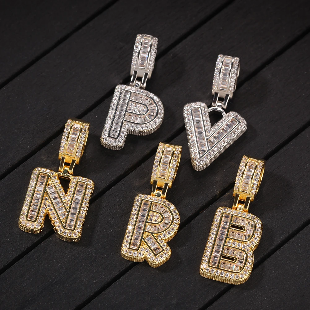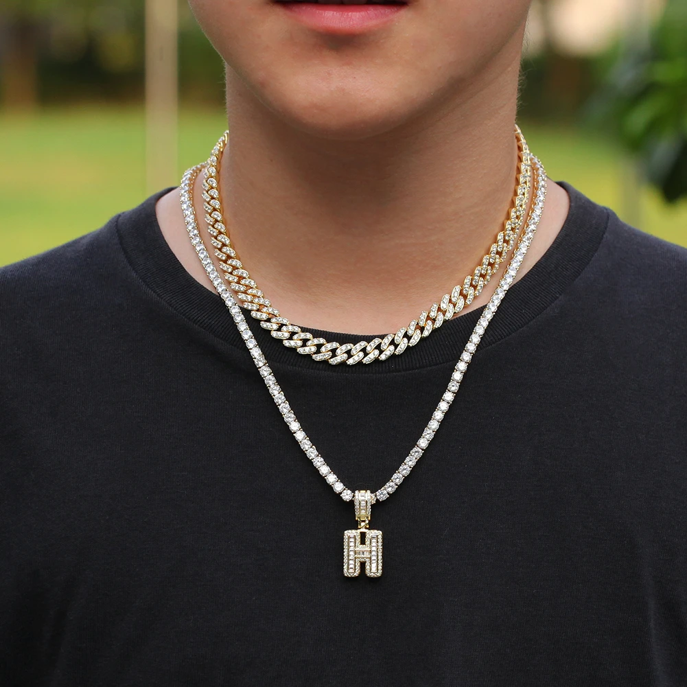 Шикарный король кубический циркон маленький багет начальные буквы кулон ожерелье слова с 4 мм CZ теннисная цепочка Ювелирные изделия