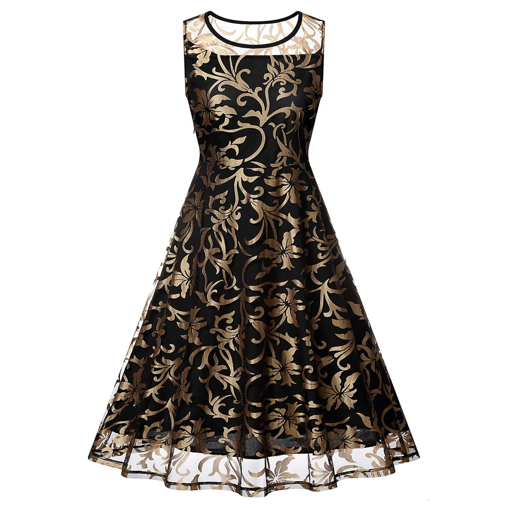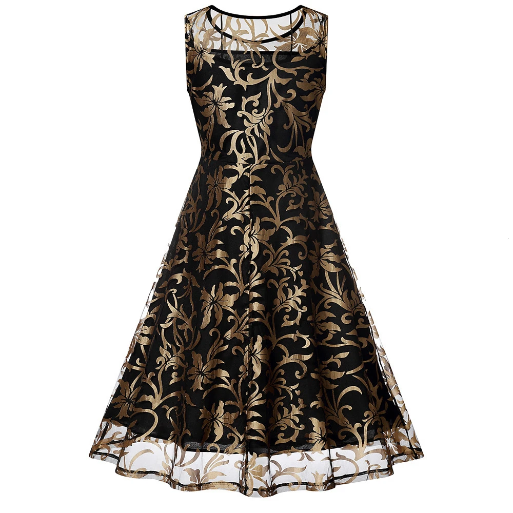 Горячая Распродажа, женское платье BacklakeGirls с золотым цветочным принтом, элегантное Тюлевое коктейльное платье до колен с круглым вырезом, Vestido Coctel Corto