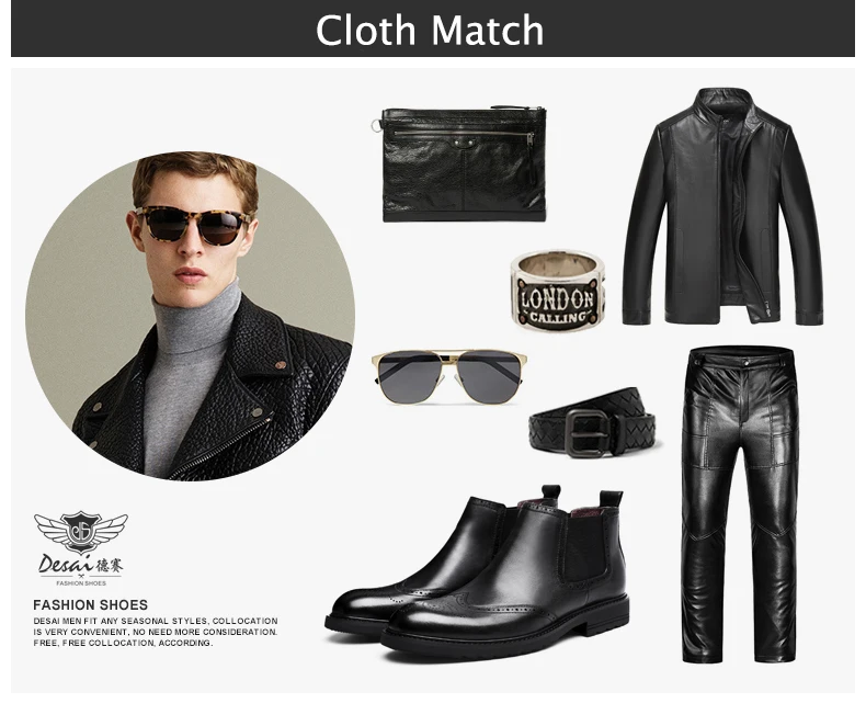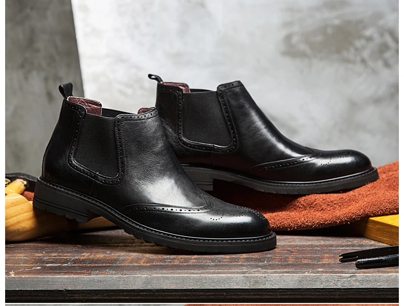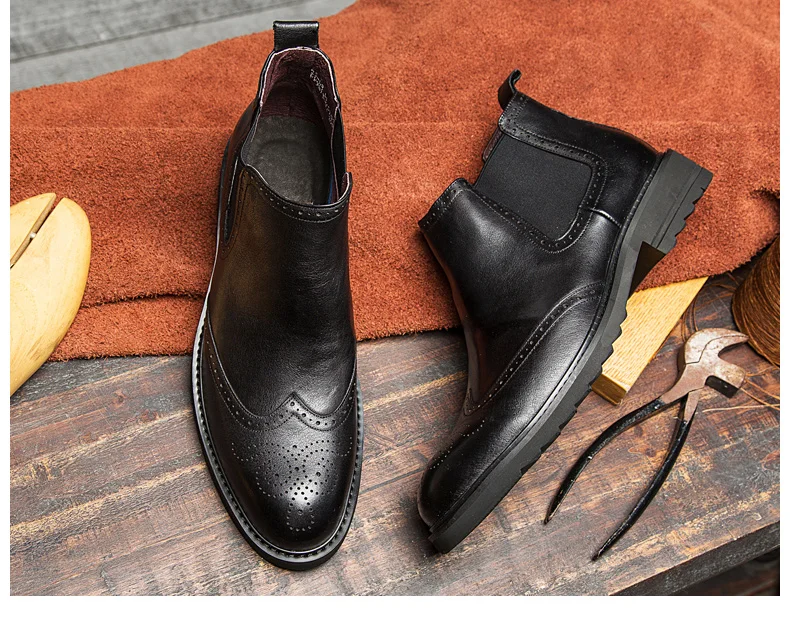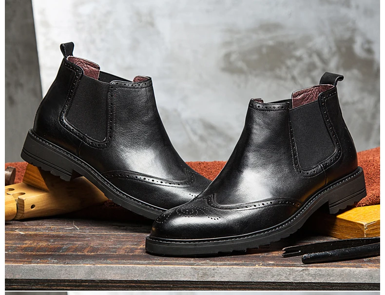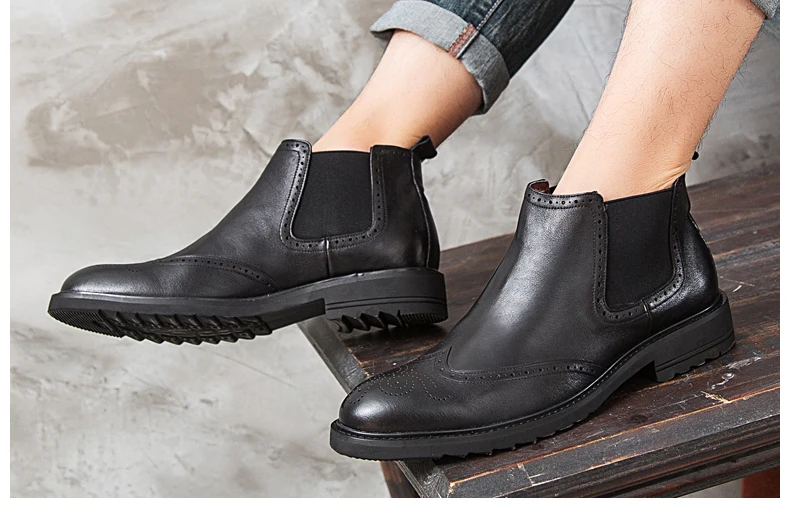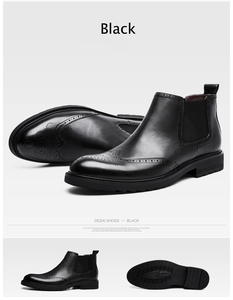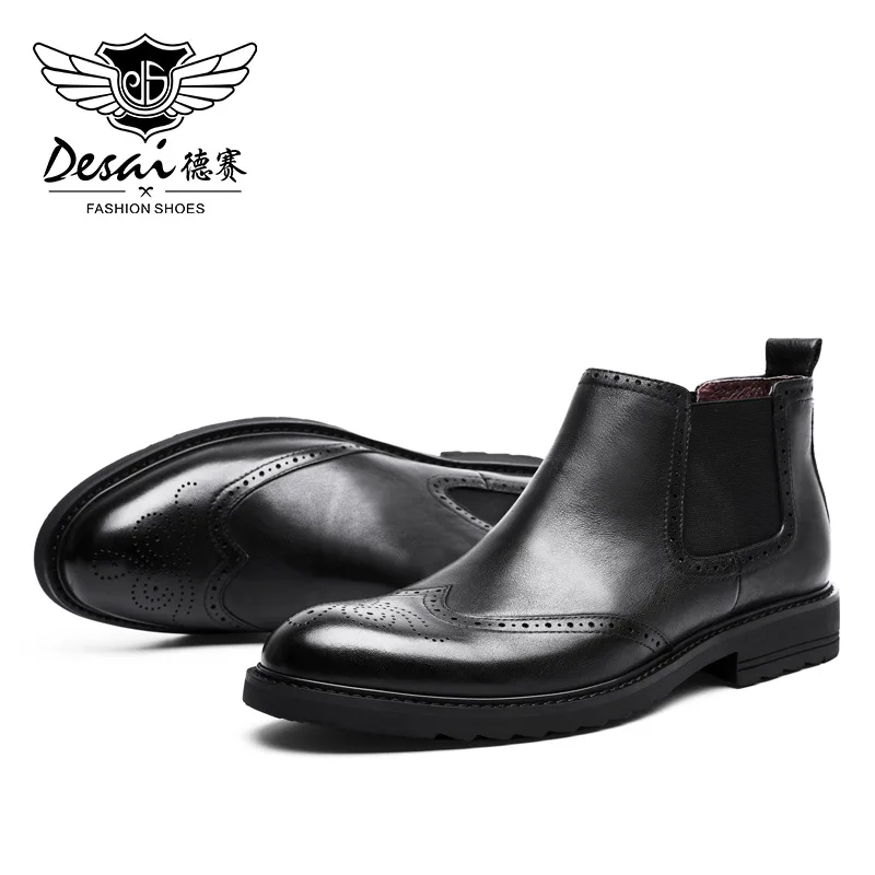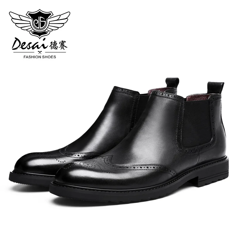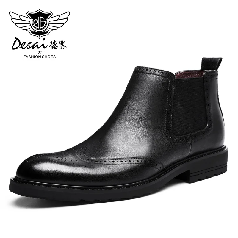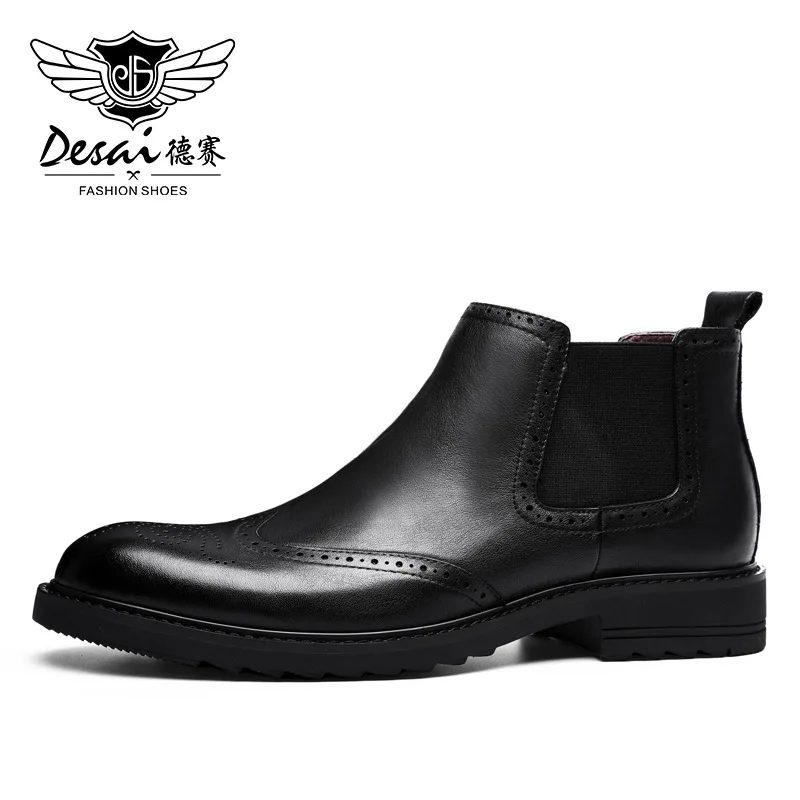 Мужские ботинки из натуральной кожи Desai, черные короткие ботинки с острым носком в британском стиле, обувь из воловьей кожи высшего качества