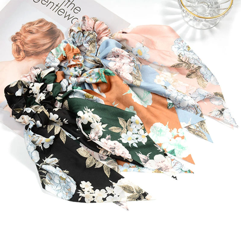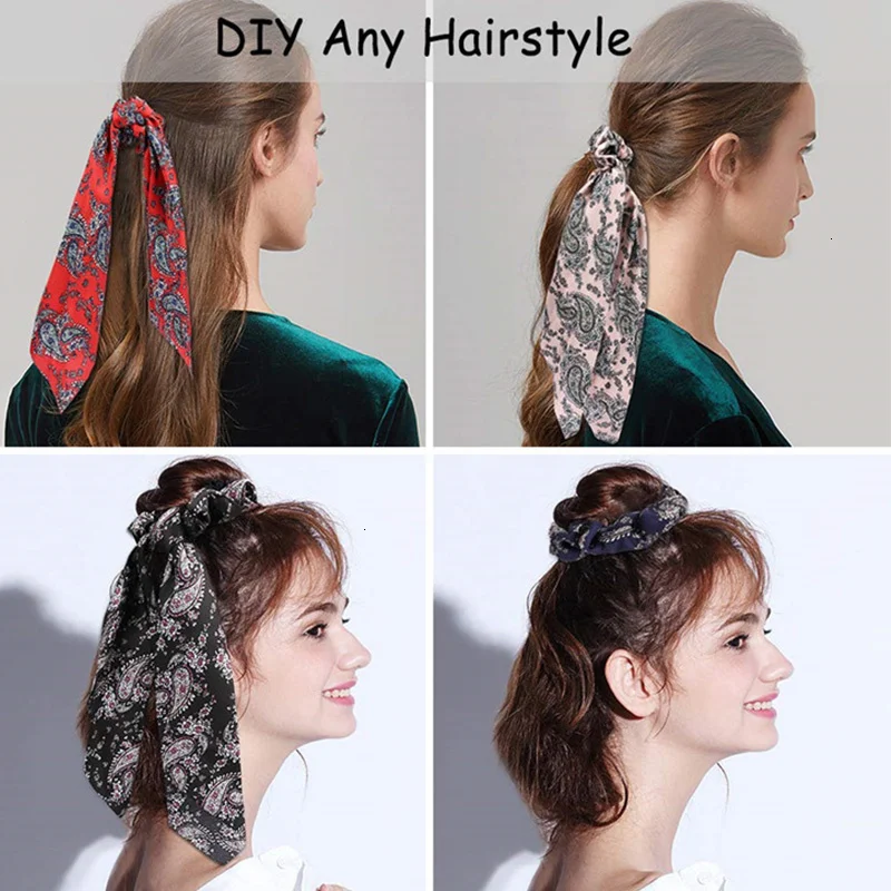 Модные аксессуары для волос, длинный шарф, ленты, резинки для женщин, галстук-бабочка, эластичный держатель для конского хвоста, повязки для волос для девочек, аксессуары для женщин