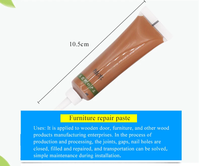 18 г за штуку Хорошая адгезия и сильное покрытие Быстрая сушка&Высокая твердость Водонепроницаемый, не выцветает Может использоваться для ремонта царапин, ударов, ОтверстияИ трещин деревянного пола или мебели.