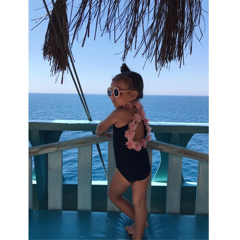 Новинка 2019 года, милые купальные костюмы без спинки в европейском стиле для маленьких девочек, купальный костюм с цветочным рисунком, пляжная одежда для детей ясельного возраста, Одежда для пляжа, купальный костюм