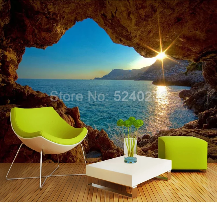 3D настенная живопись Cave Sunrise Seascape современное искусство, пейзаж Фото Фреска для гостиной спальни ресторана фото обои