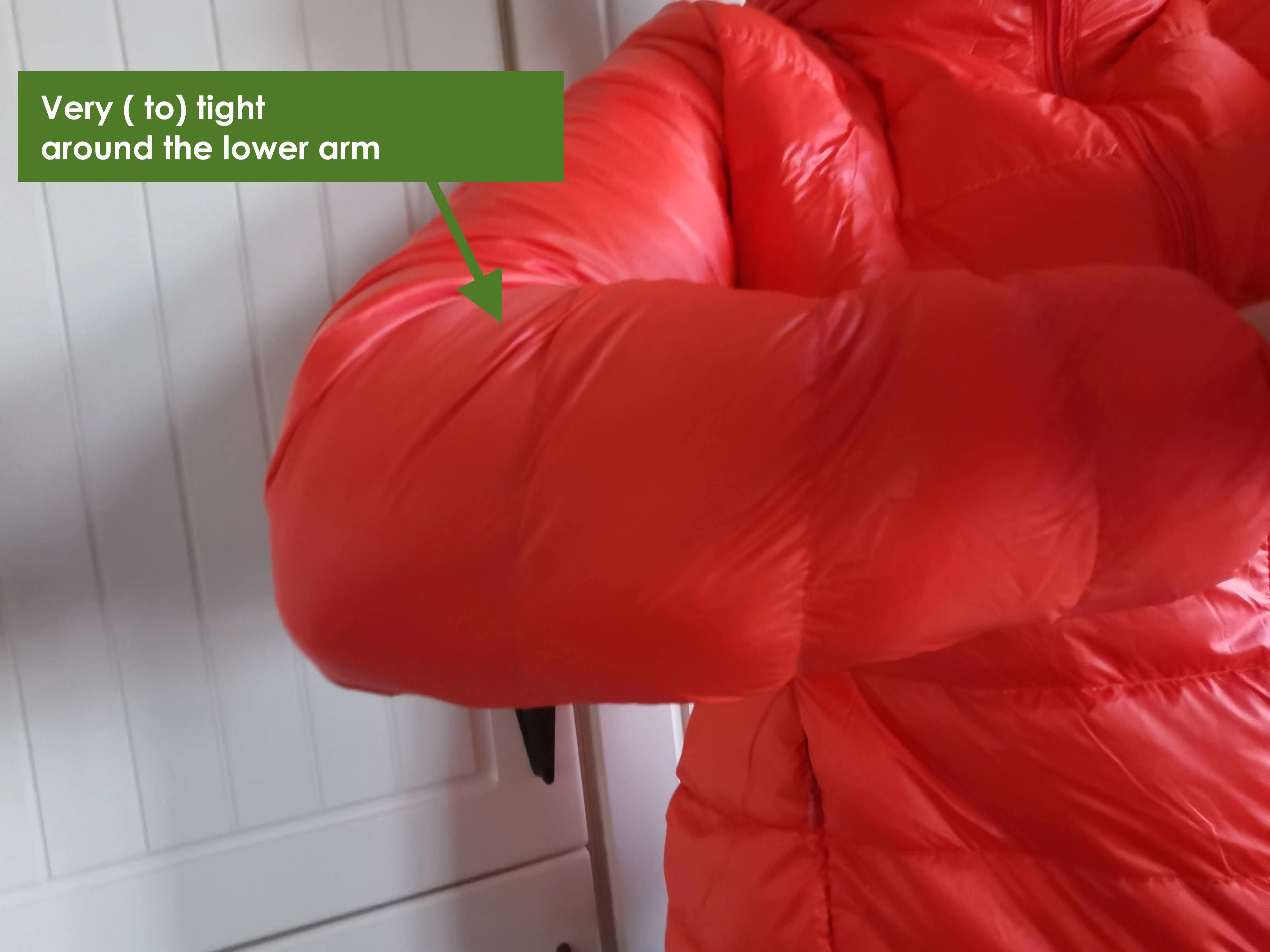 Я заказал ярко-оранжевую куртку с капюшоном, Размер 3XL. Есть минимум перьев. Я следовал меркам, когда заказал, и добавил еще несколько см, чтобы убедиться, что куртка не будет слишком маленькой. Однако вырез необычный. У меня на плечах куртка слишком маленькая. Вокруг талии она большая и по сравнению с плечиками и руками она не пропорциональна. Вокруг верхней руки у меня нет много места, но она все еще пригодна для носки. Нижняя рука слишком плотная. Настолько туго, что он зажимает руку, даже когда я держу руку растянутой Imo выреза необычная. Потому что если бы общий размер был мал, куртка определенно была бы слишком тугой вокруг груди и талии, это не так. Обычно, когда одежда мне не подходит, это потому, что она слишком маленькая вокруг груди. С этой курткой Нижняя рука является основной проблемой, а длина рук слишком короткая. Я разочарован и совсем не доволен. В целом цвет приятный и яркий.